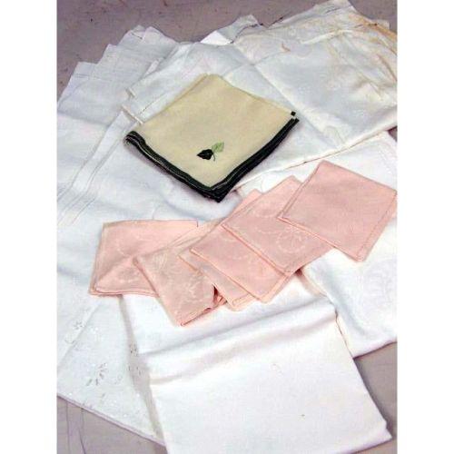 AN ASSORTED GROUP OF TABLE LINENS<BR><BR>Including damask sets, table cloths and napkins, stains