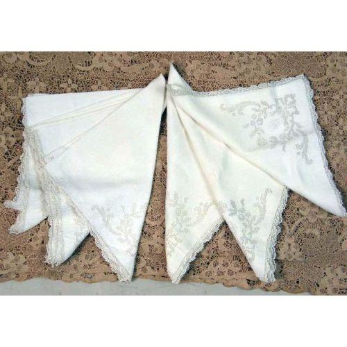 AN ASSORTED GROUP OF TABLE LINENS<BR><BR>Including, handmade Venetian lace, stains