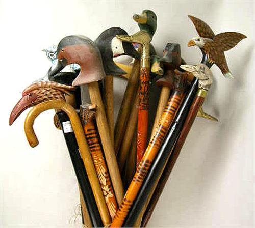 AN ASSORTED GROUP OF WALKING STICKS; Hand holds primarily fitted with wildfowl heads 21 pieces