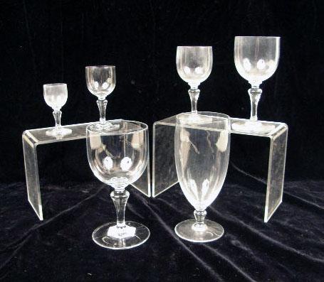 Comprising eight water goblets, twelve white whines, fifteen red wines, fourteen sherry, four ports, twelve cordials and eleve finger bowls.