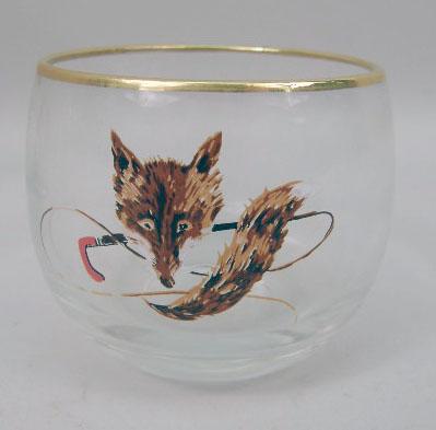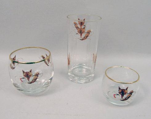 AN ASSORTMENT OF BAR WARE HAND-PAINTED WITH FOX HEADS