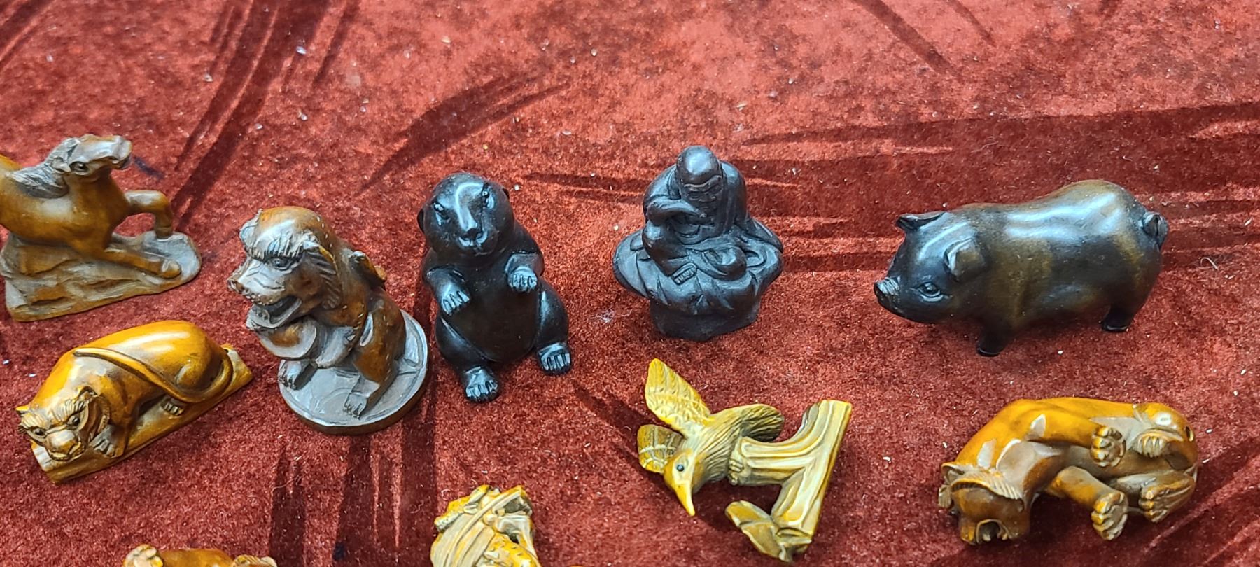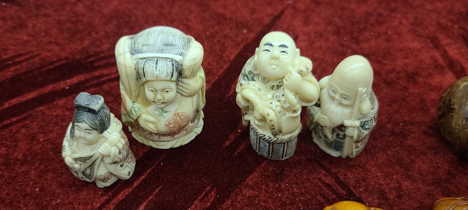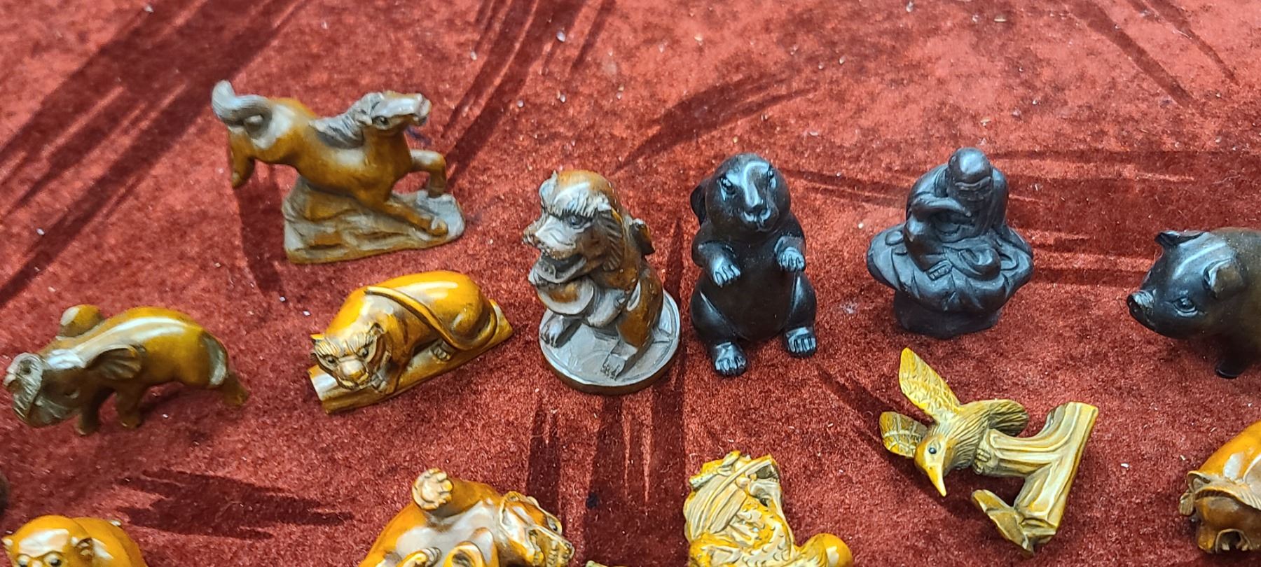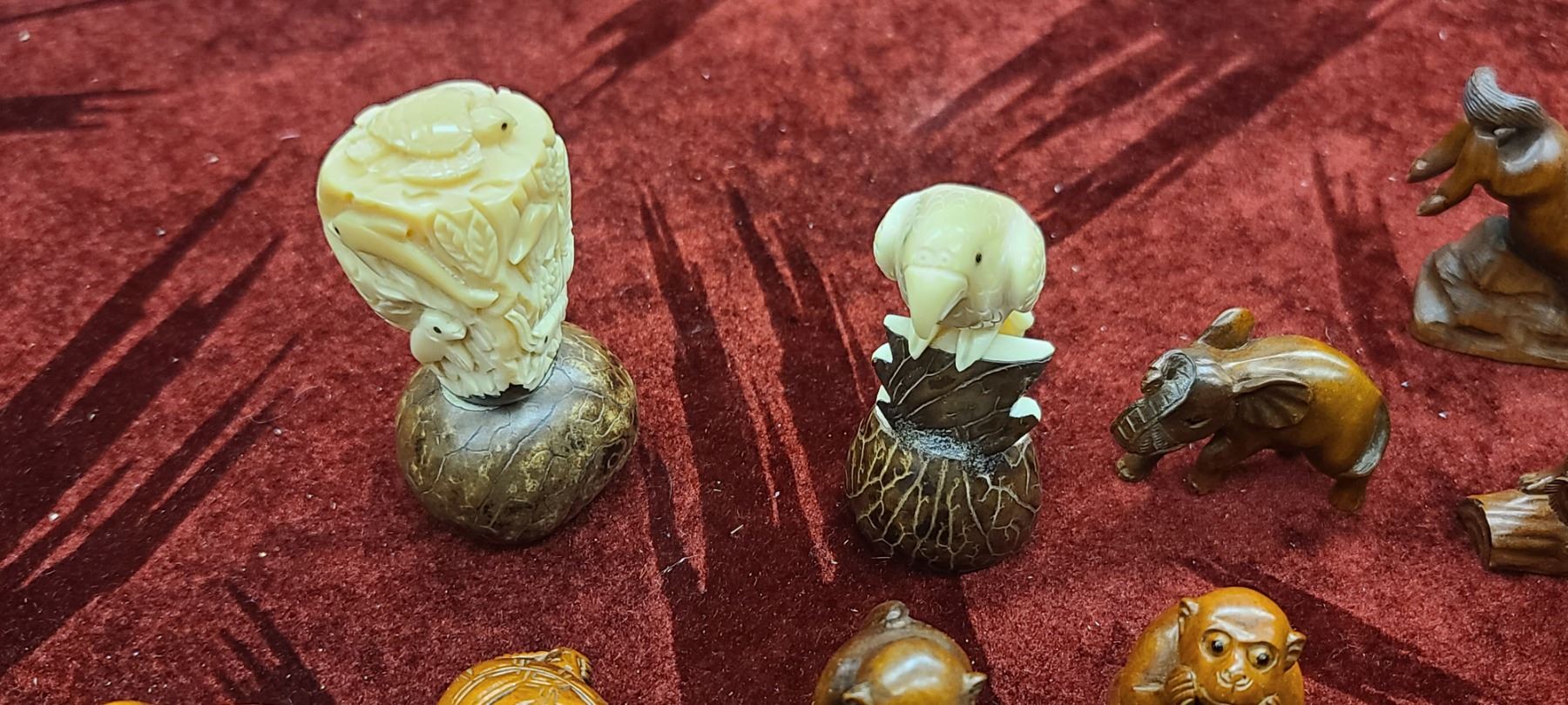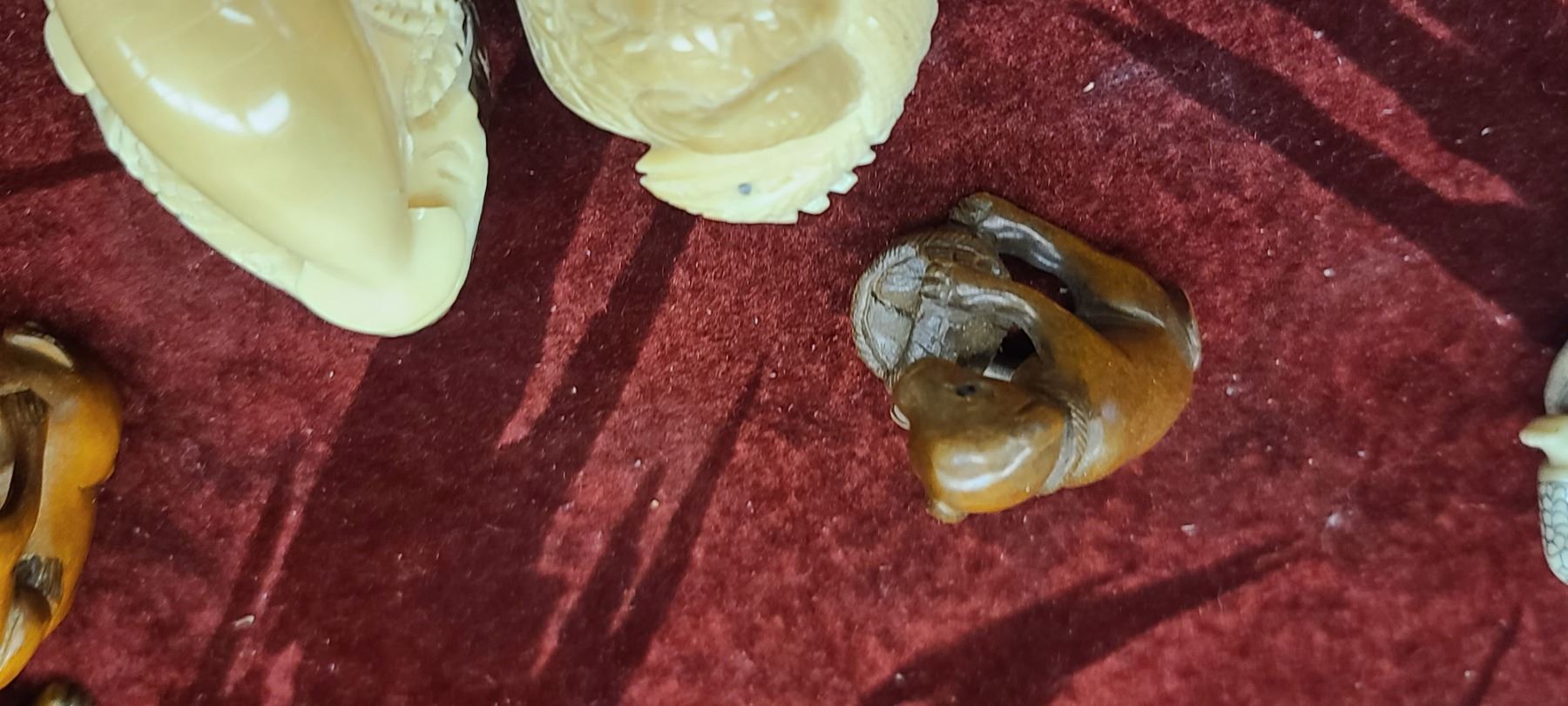 AN ASSORTMENT OF CARVED FIGURINES - NOT ON BOX SAYS QTY9 ARE IVORY