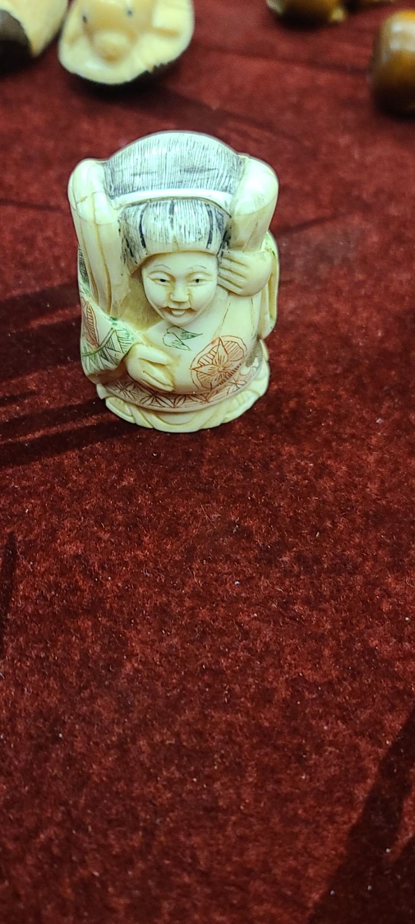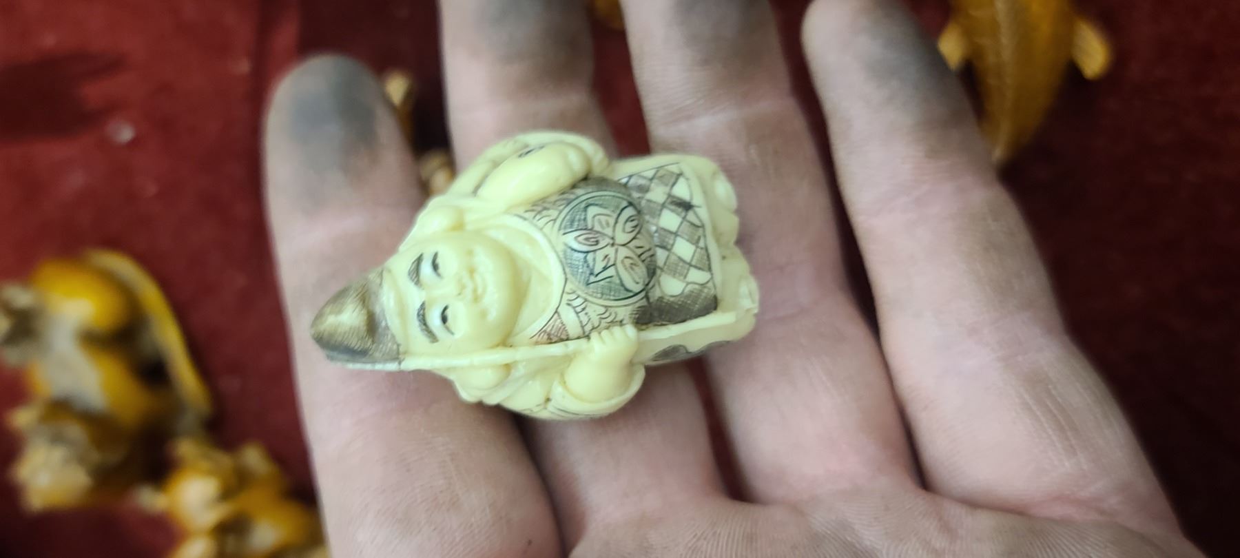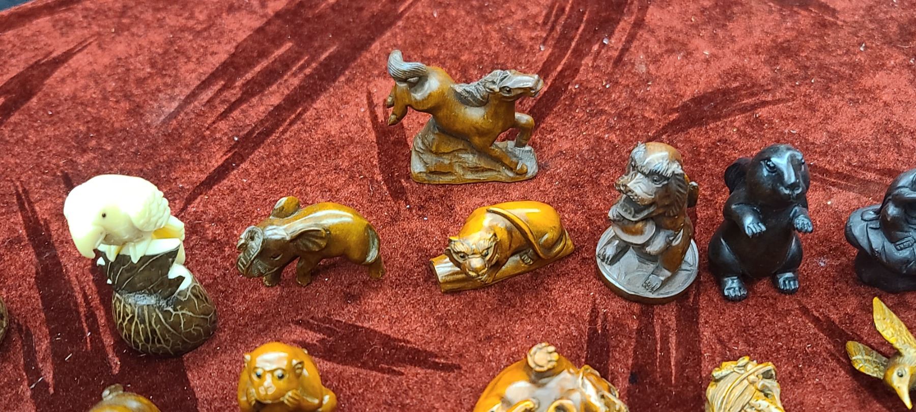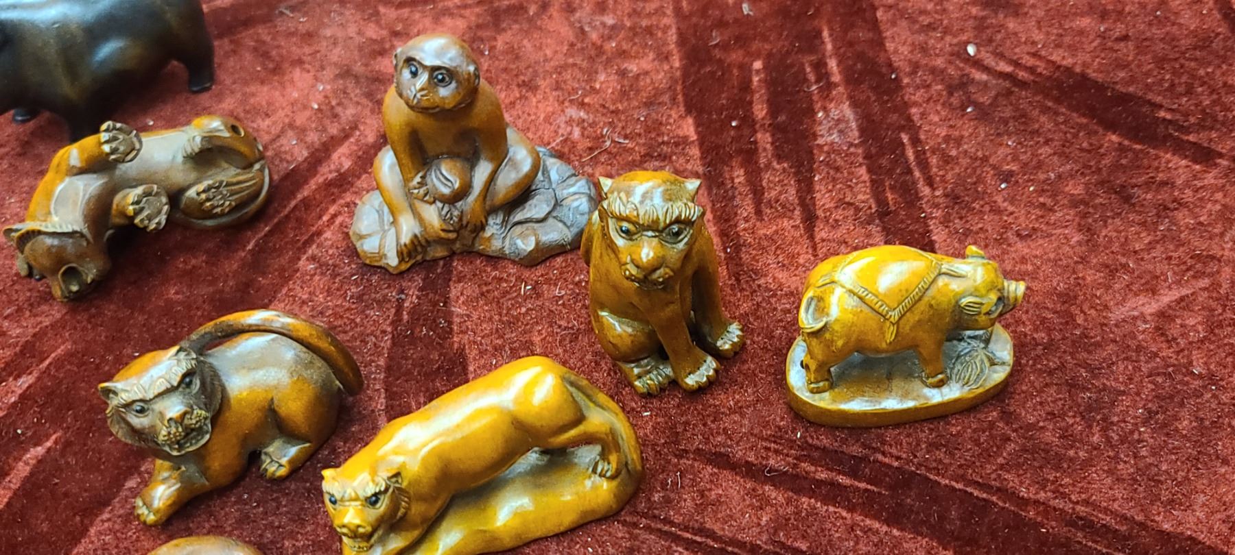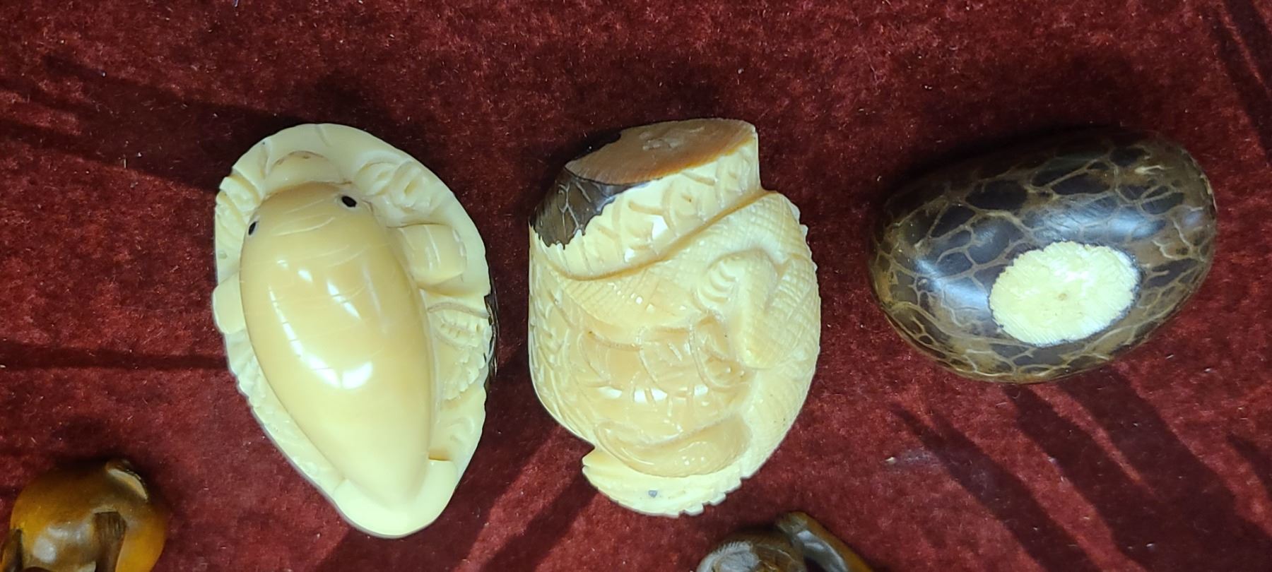 AN ASSORTMENT OF CARVED FIGURINES - NOT ON BOX SAYS QTY9 ARE IVORY