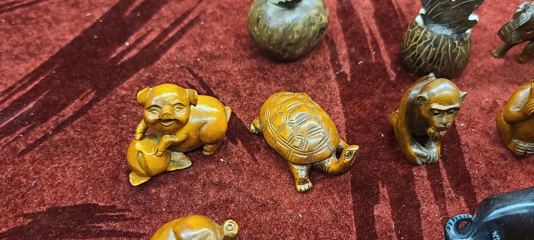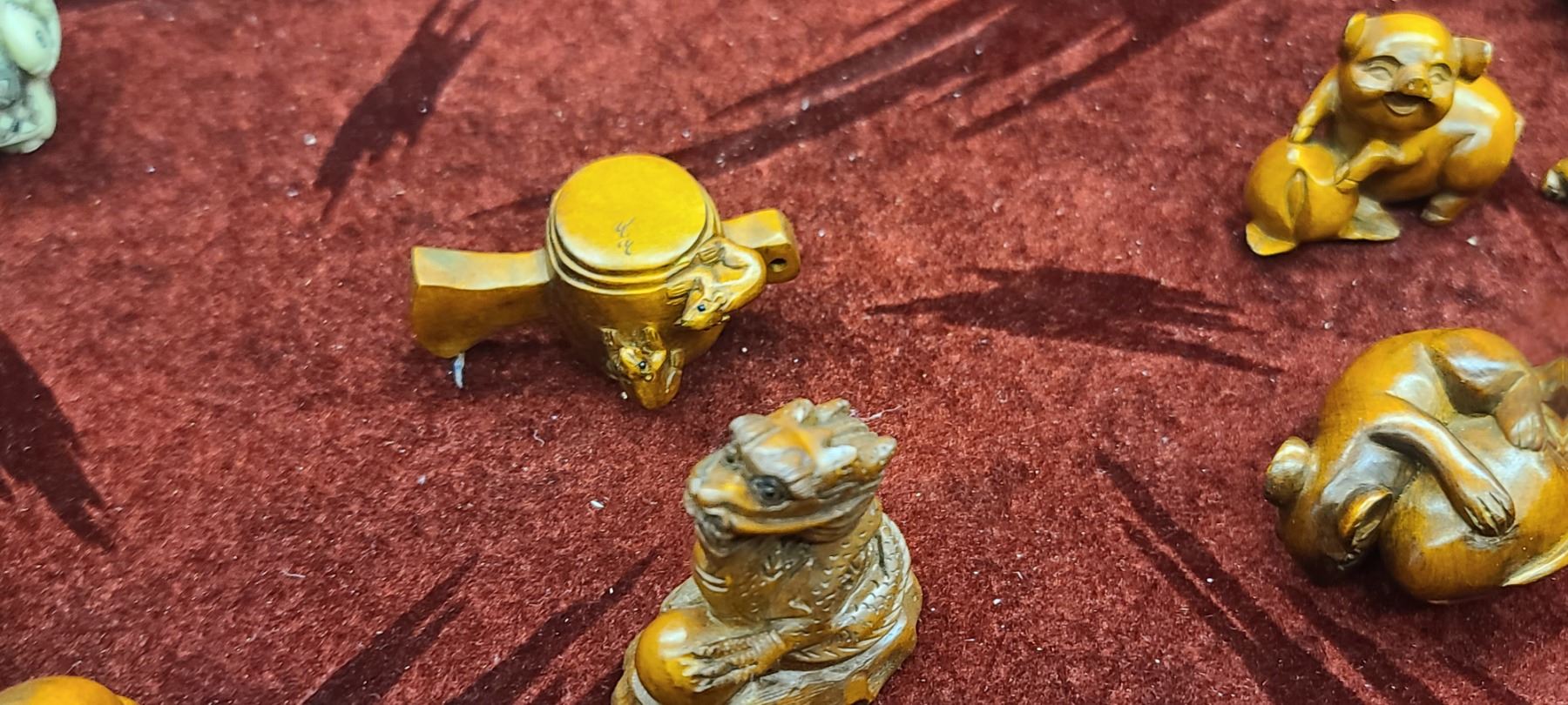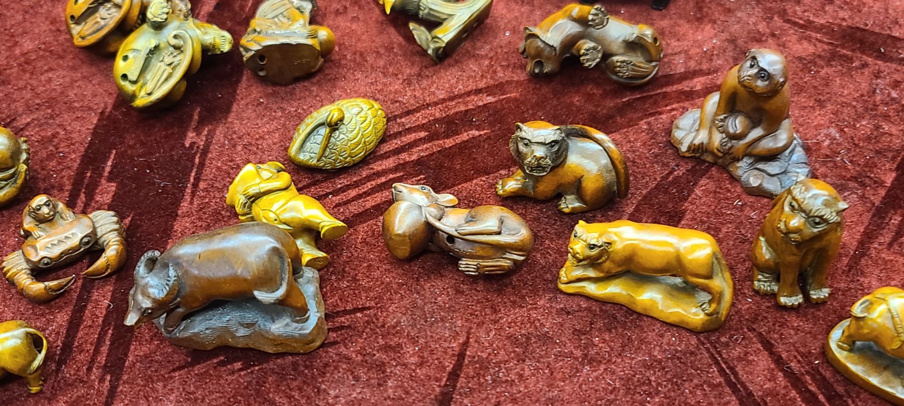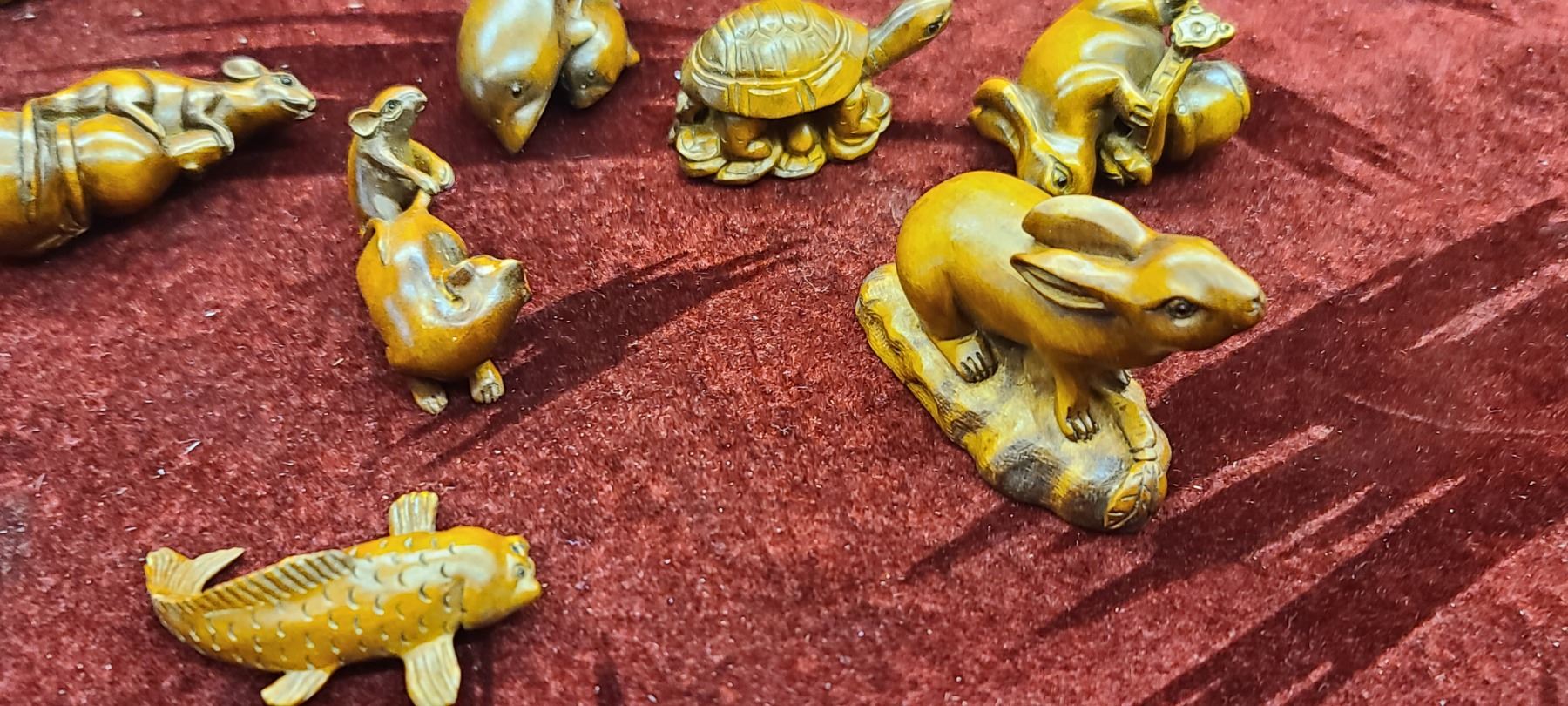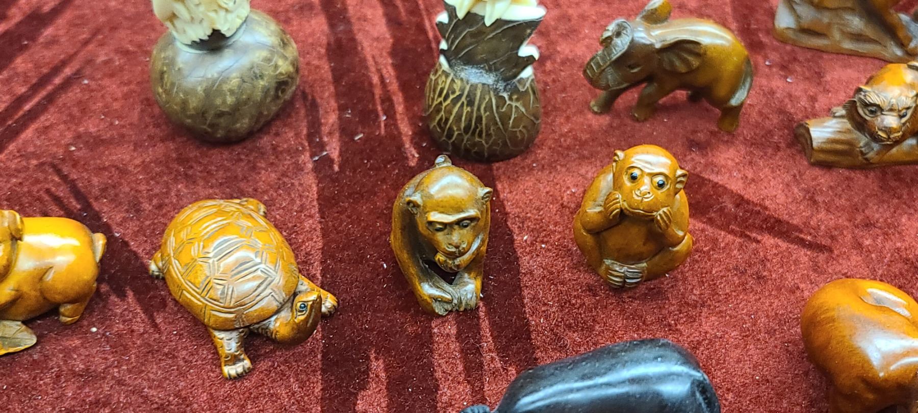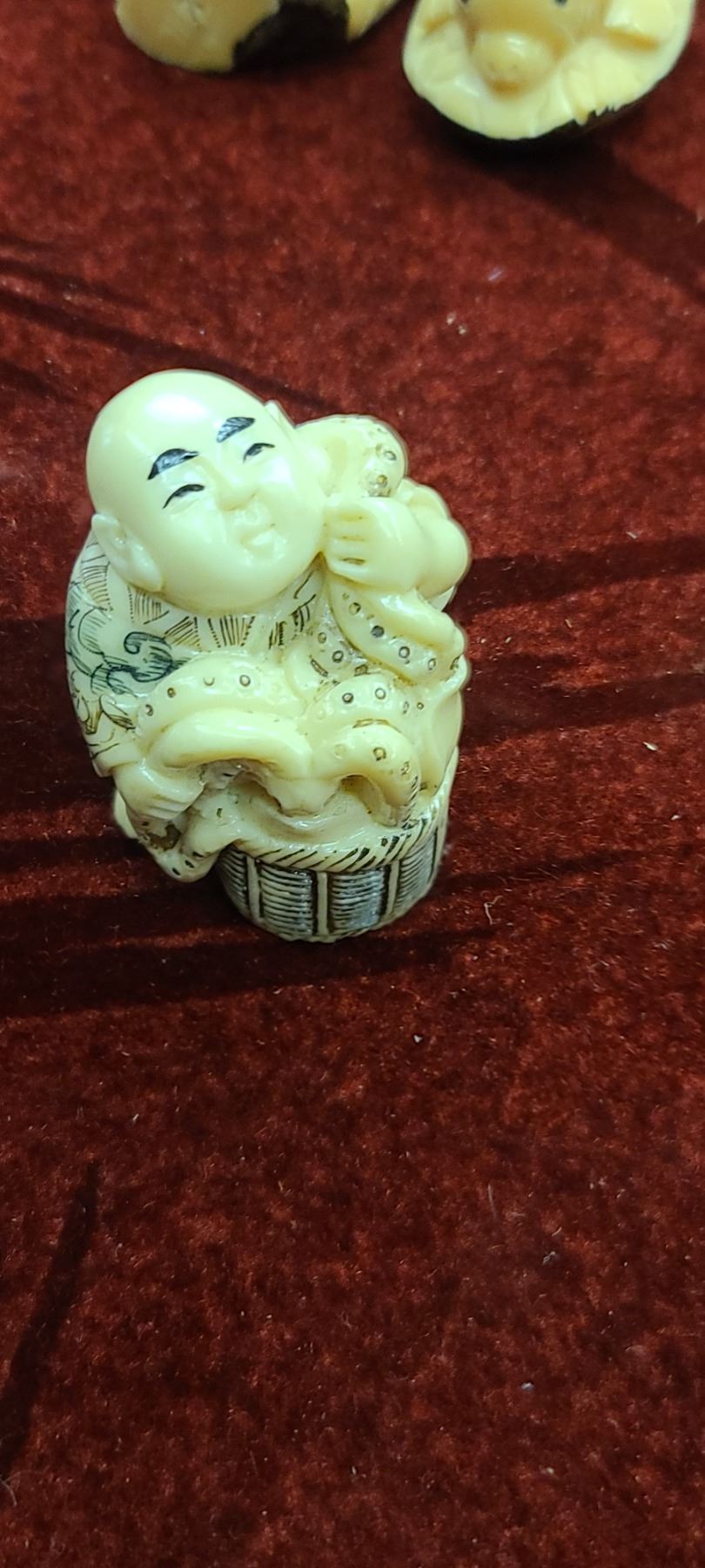 AN ASSORTMENT OF CARVED FIGURINES - NOT ON BOX SAYS QTY9 ARE IVORY