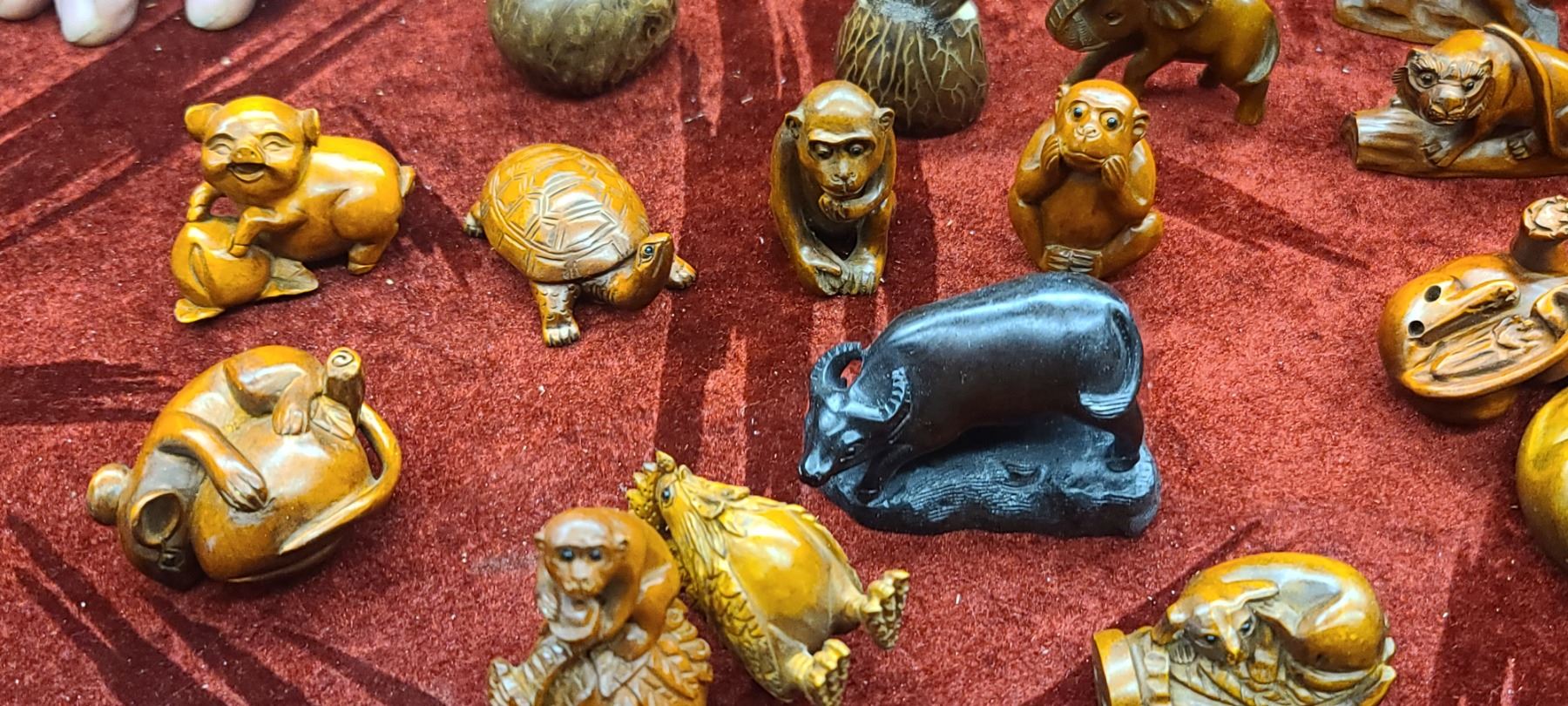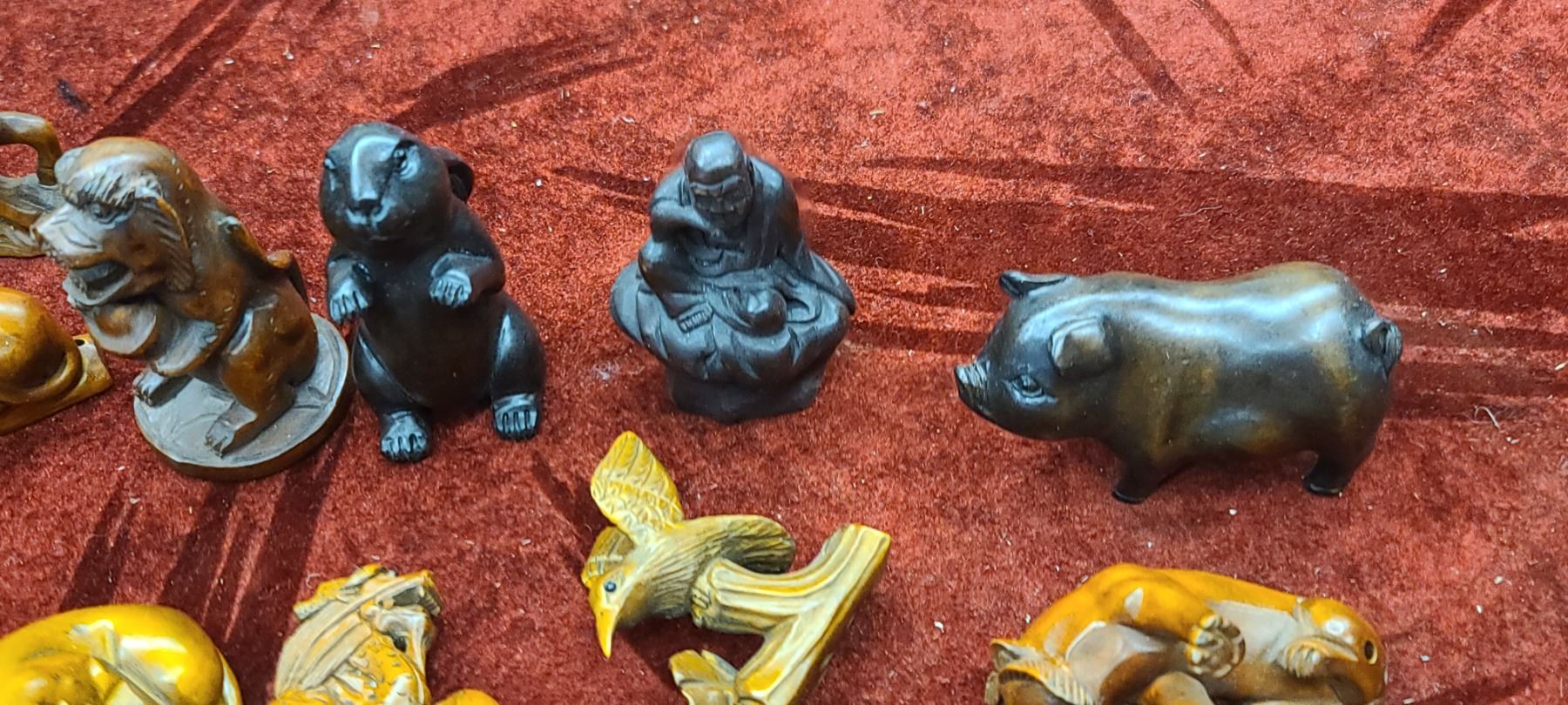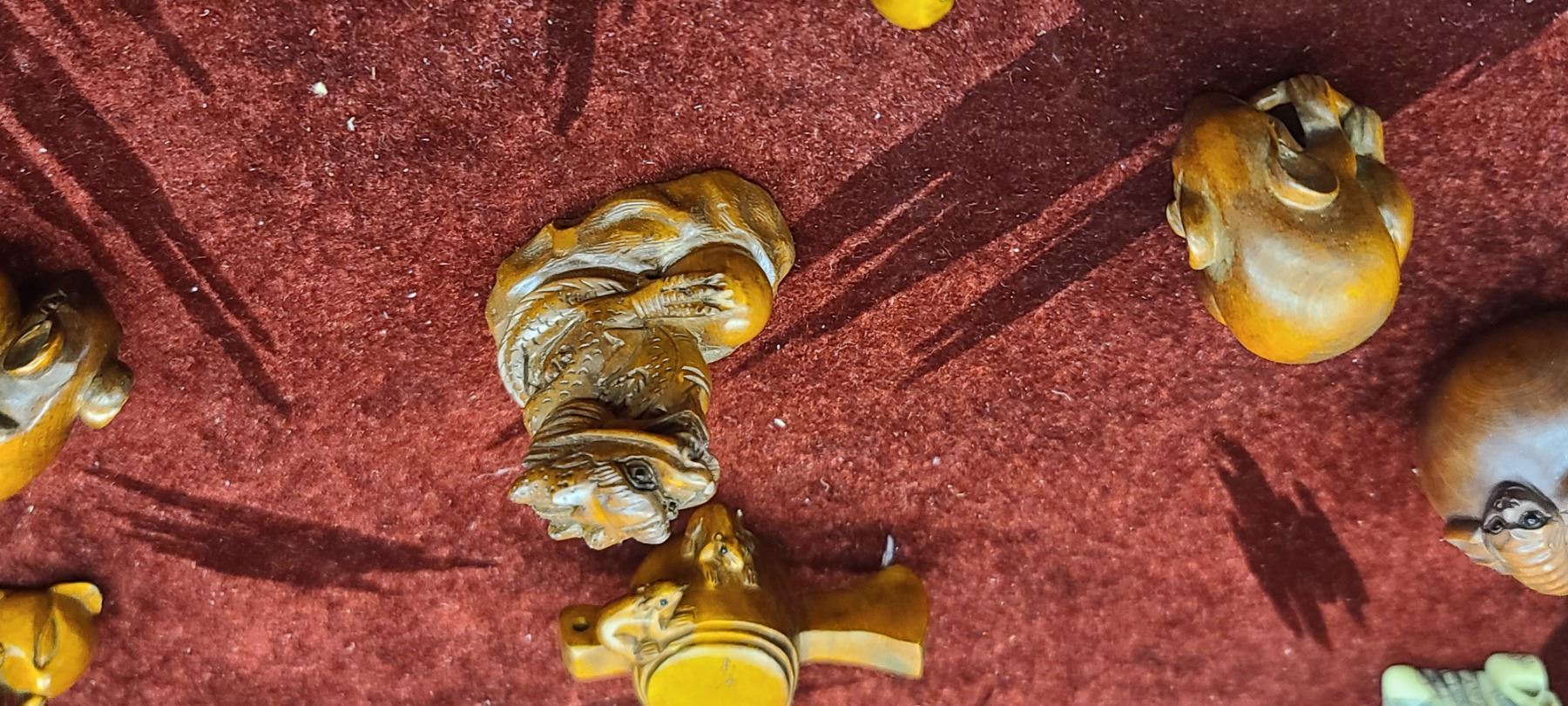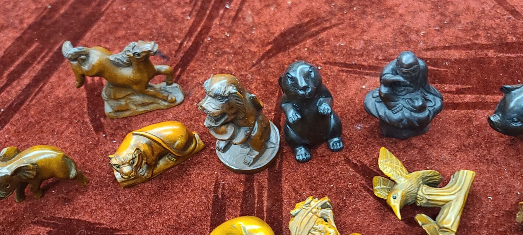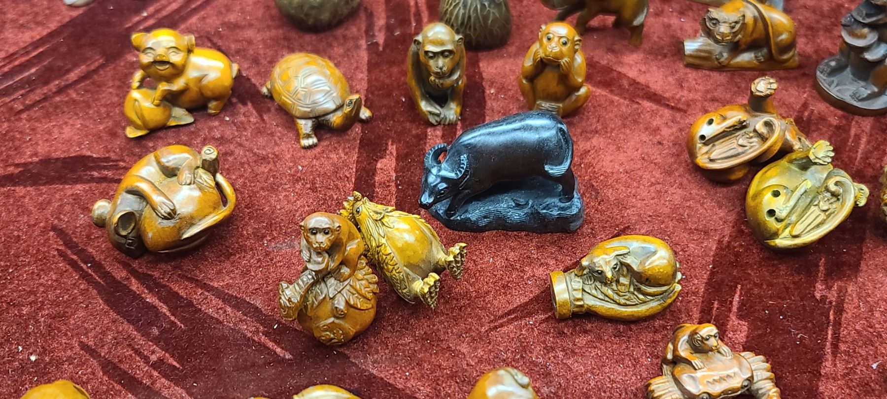 AN ASSORTMENT OF CARVED FIGURINES - NOT ON BOX SAYS QTY9 ARE IVORY