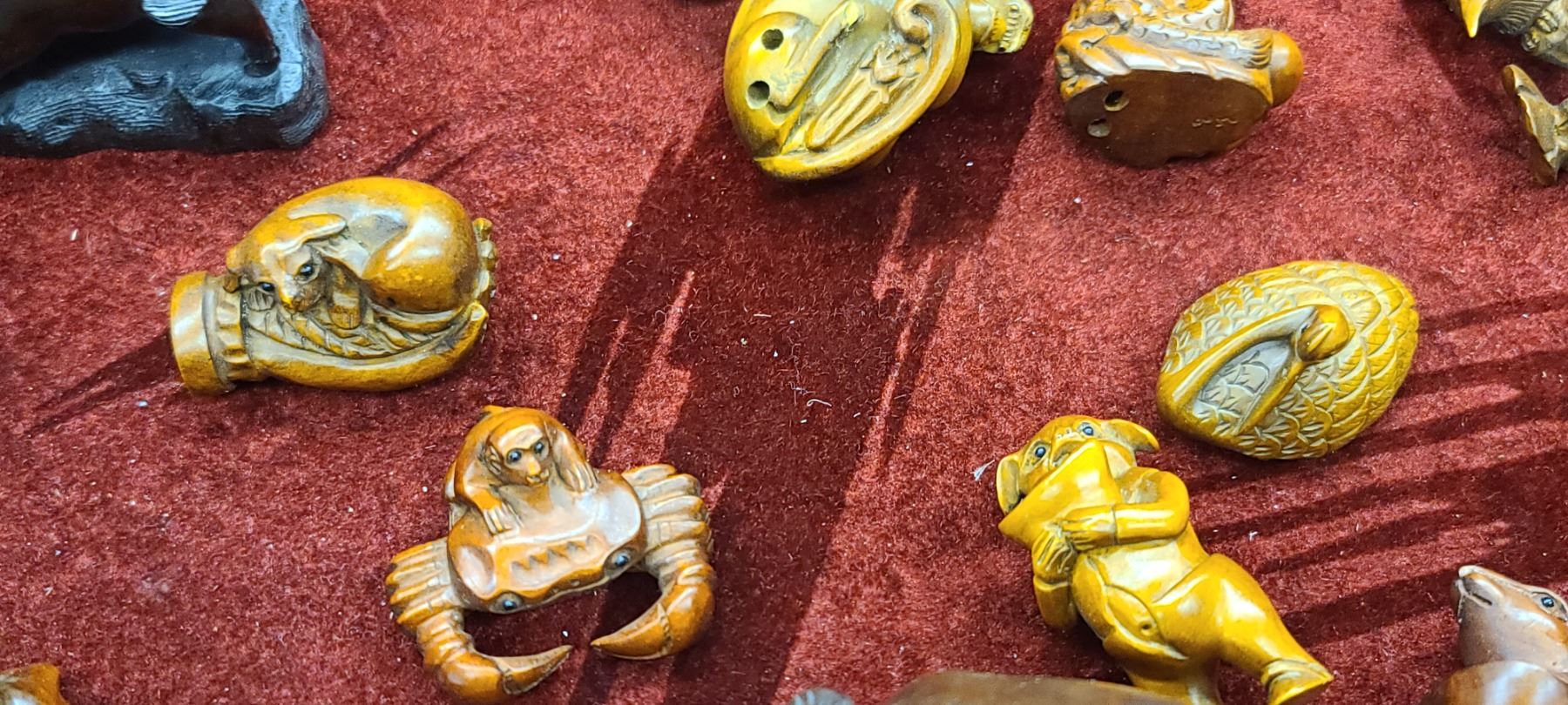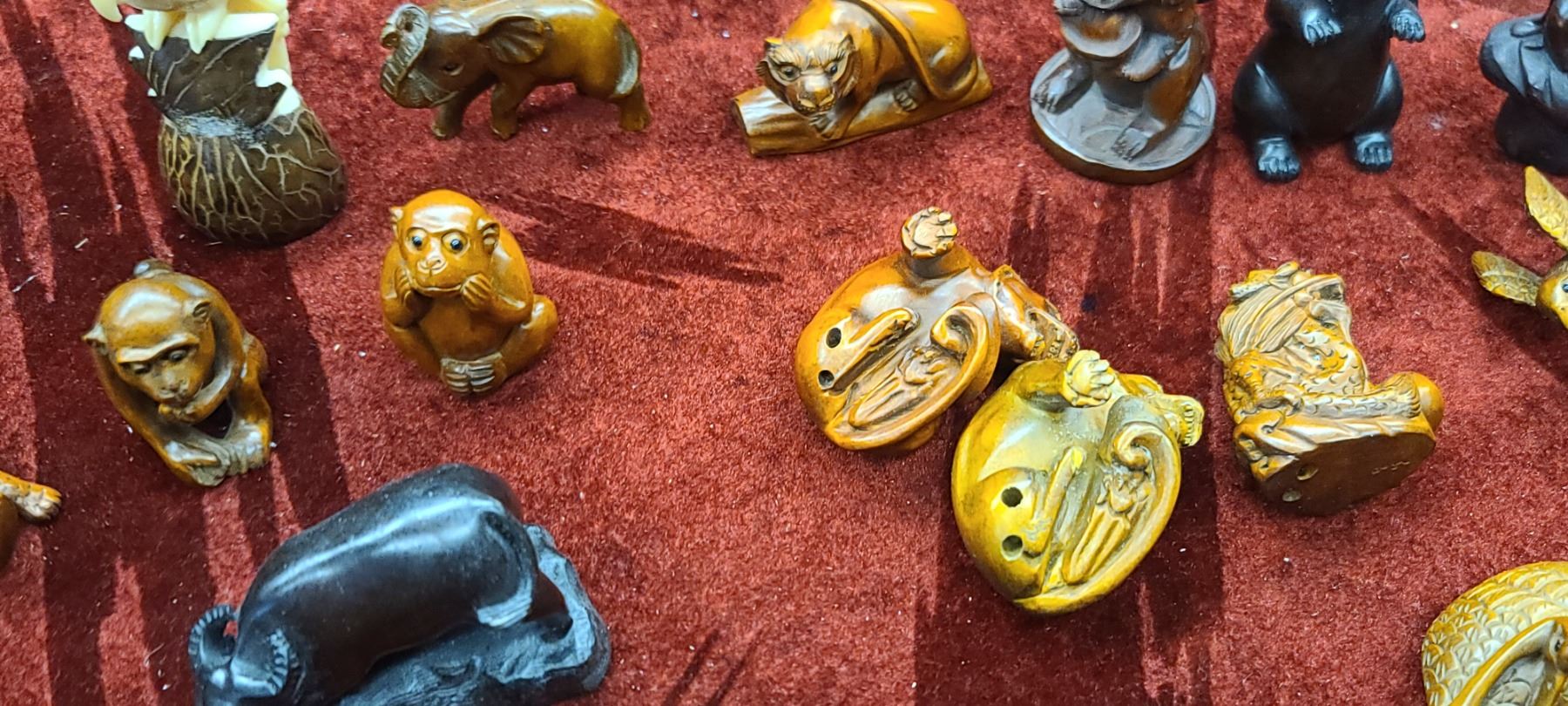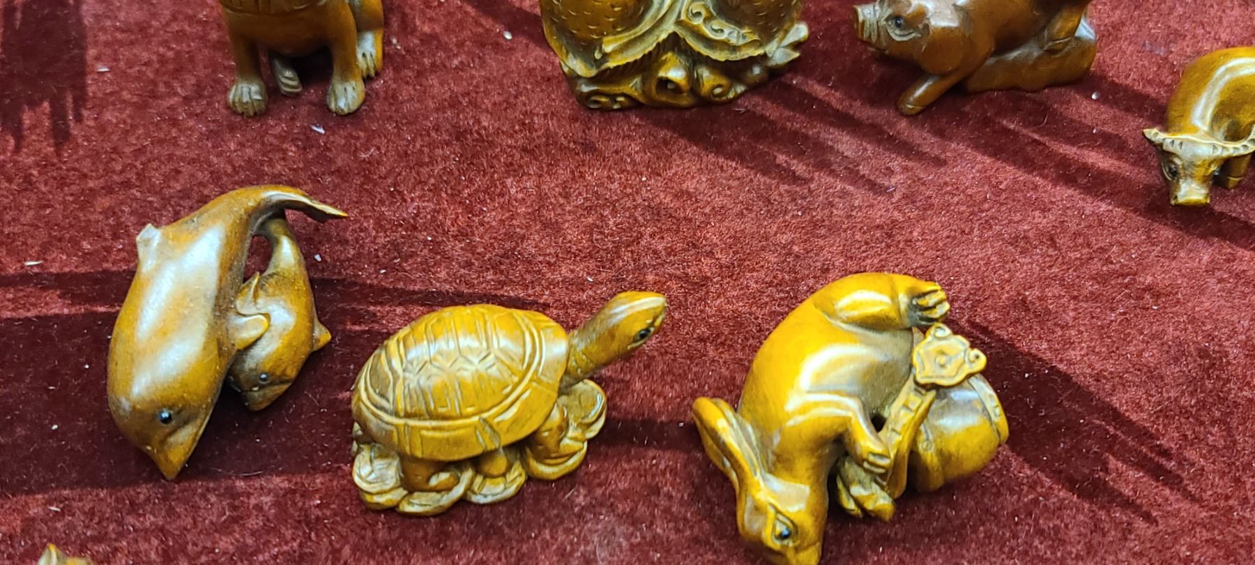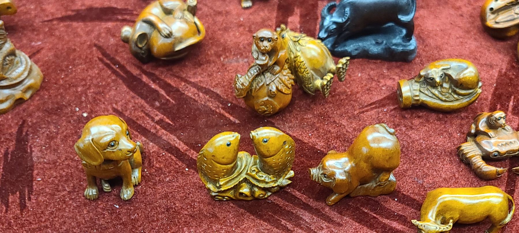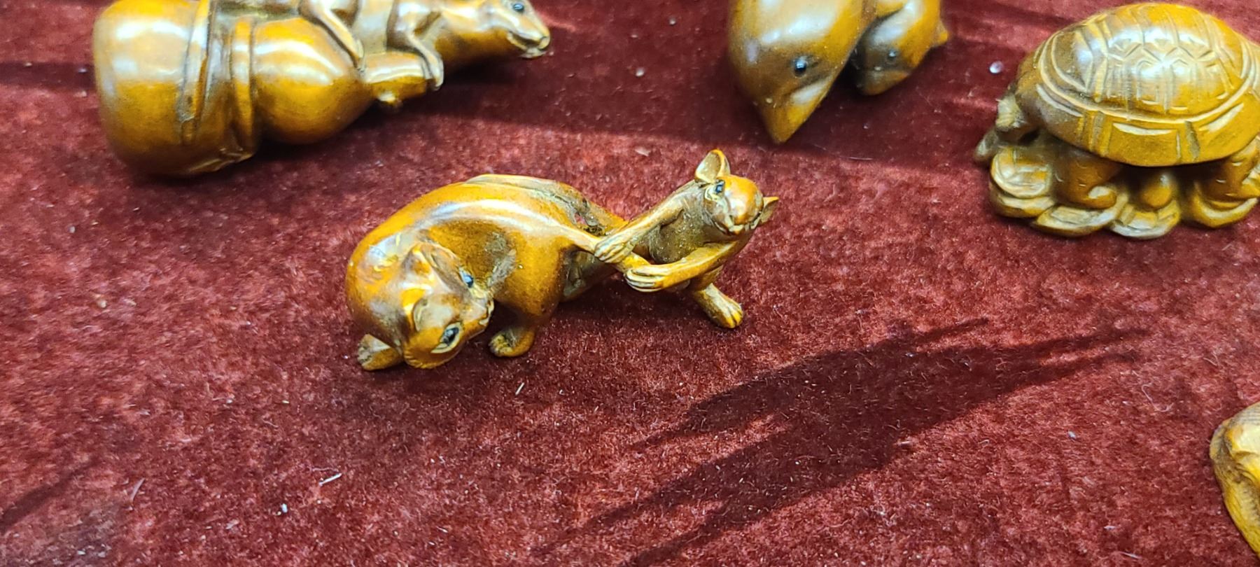 AN ASSORTMENT OF CARVED FIGURINES - NOT ON BOX SAYS QTY9 ARE IVORY