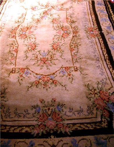 AN AUBUSSON STYLE CARPET; Worn 14'l x 9 1/2'w