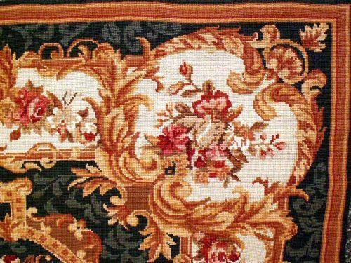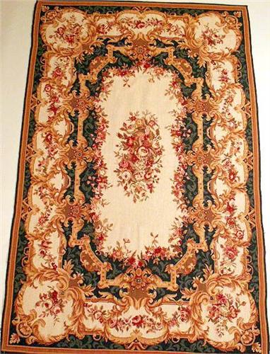 Worked in green, beige, and ivory. 47"w x 6`l.