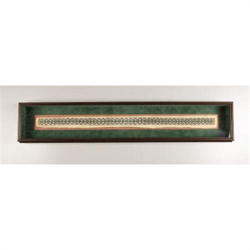 <B>AN EASTERN WOODLANDS LOOM-BEADED BELT<BR><BR></B></I>c. 1890 with a diamond pattern, stitched in various shades of glass seed beads<BR><BR>Length: 33 1/4 inches <B>Condition Report:</B> Overall very good conditon. Very minor beadwork loss. Cloth with light soiling. No apparent restoration.<BR><BR><b>Shipping:</b> Requires 3rd Party Shipping (<a target="_blank" href="http://www.heritageauctions.com/common/shipping.php">view shipping information</a>)