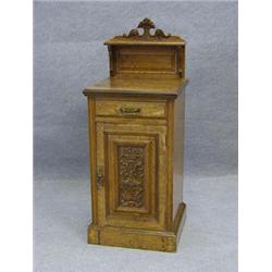 AN EDWARDIAN BURR WALNUT VENEERED BEDSIDE CABINET, raised back, single drawer over a cupboard, stamped 'Maple & Co', width 36cm £100-120