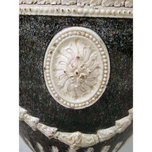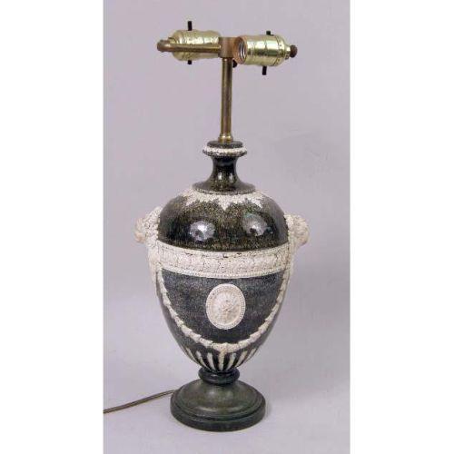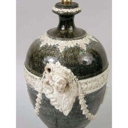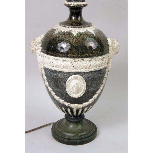 AN EGG-FORM MOLDED POTTERY VASE<BR><BR>Now fitted as a lamp, 24-1/2"h, including shade