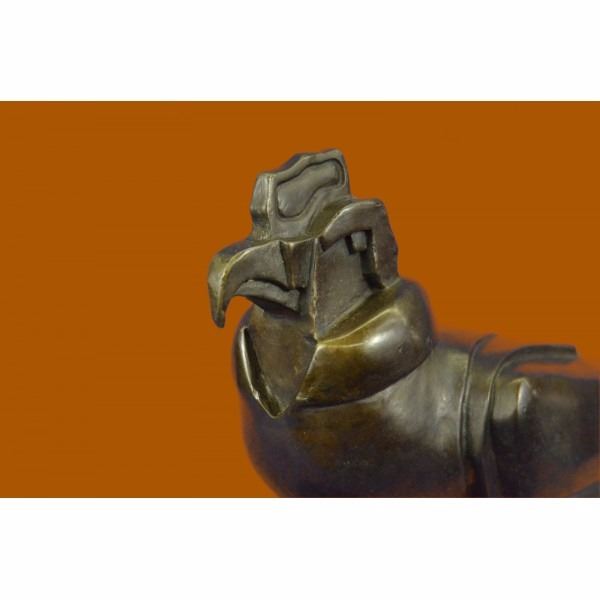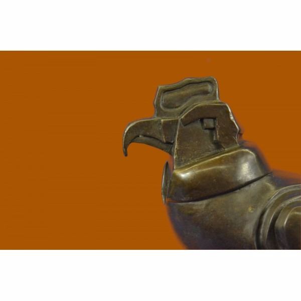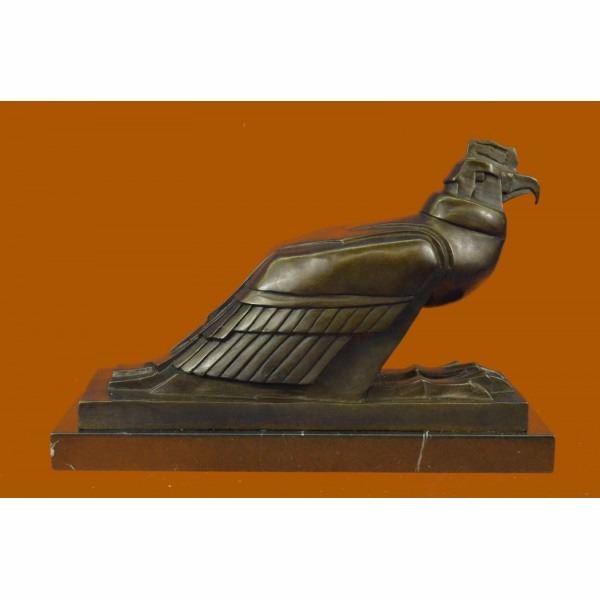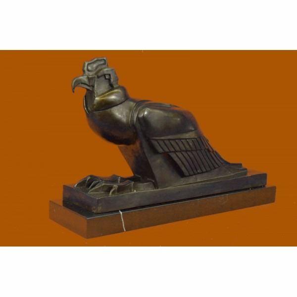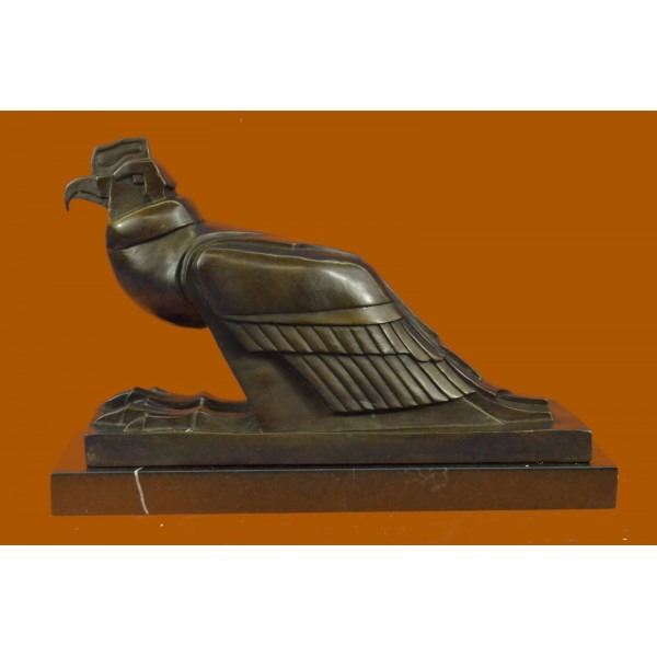 AN EGYPTIAN STYLE FIGURE OF THE HORUS FALCON, NEW KINGDOM/EARLY PERIOD, standing with wings folded over the tail, with large round eyes with raised rims, the eye markings and feathers finely engraved, remains of a square tenon on the crown for attachment of the headdress. This sculpture was cast using the "lost Wax Method" and has a brown patina. It is mounted on a marble base and is signed. Condition : This sculpture is in a perfect condition. Bronze Dimensions with Marble Base:Height 9.5" x Width 14" Marble Dimensions: 14 " X 4 1/2" Height without base: 8.5" Weight : 14 LBS Inventory : 27X22058072