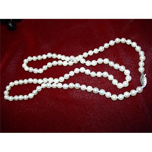 THE PEARLS ARE WHITE COLOR AND IN A VERY GOOD CONDITION. THE NECKLACE IS FINISHED WITH A 14K WHITE GOLD CLASP.