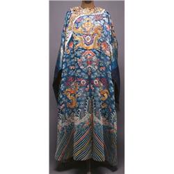 AN EMBROIDERED SILK GAUZE DRAGON ROBE, the blue ground worked with dragons above waves in the conventional format, enriched with metal wrapped threads, approx.