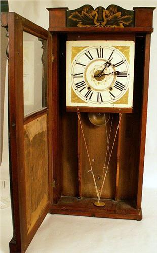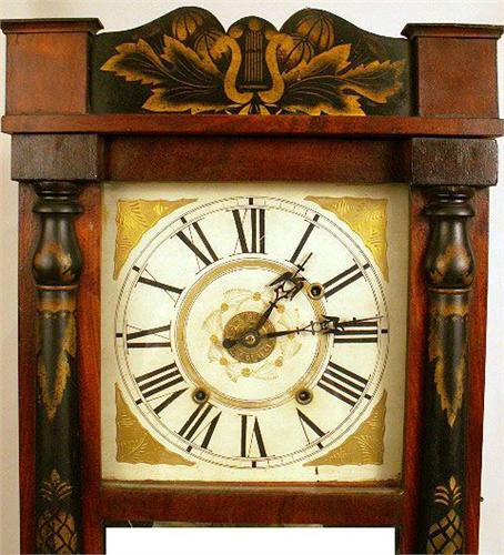American, probably Connecticut, fitted with a mirrored panel. Some wear, losses, and replacements. 34 1/2"h x 16 1/4"w x 6"d.