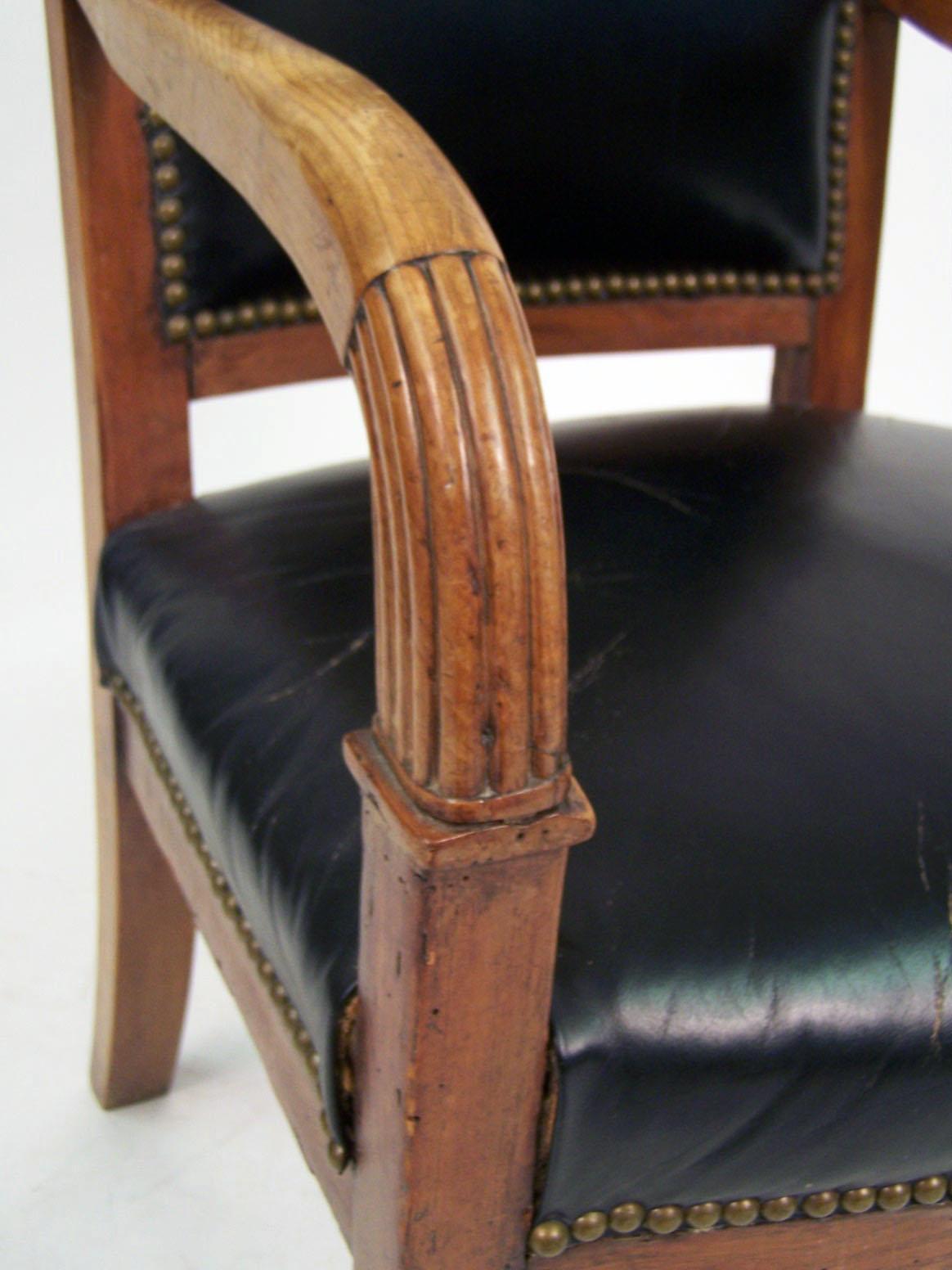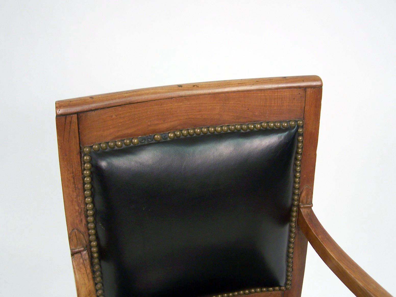 AN EMPIRE CARVED FRUITWOOD AND LEATHER-UPHOLSTERED ARMCHAIR