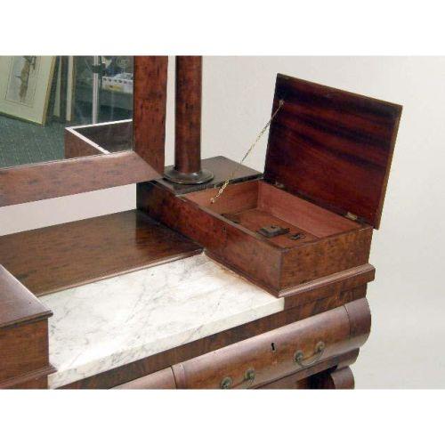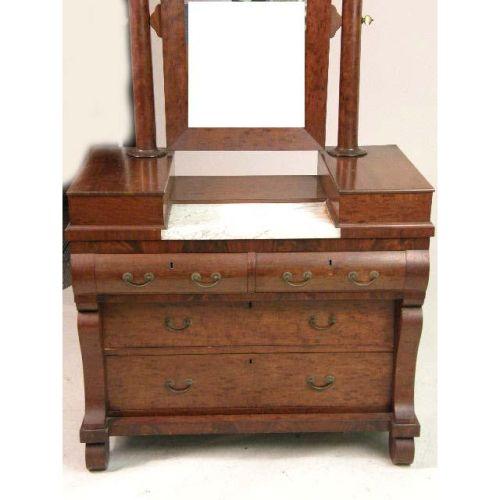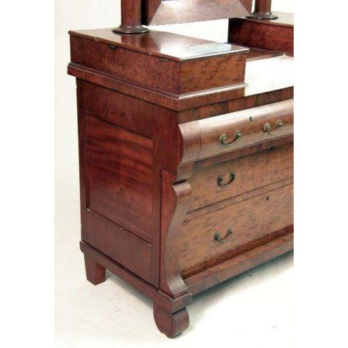 AN EMPIRE MAHOGANY AND MARBLE-TOP DRESSING CHEST<BR><BR>American, some wear, approximately 6`2"h x 41"w x 23"d