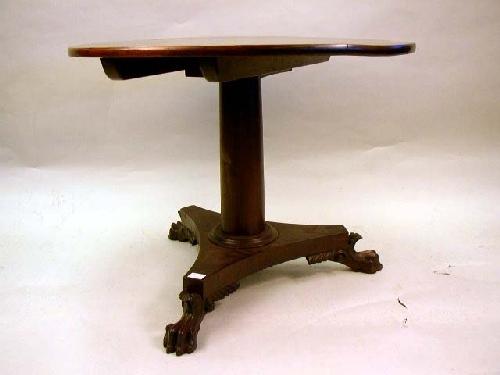AN EMPIRE MAHOGANY CLAW FOOT BREAKFAST TABLE;
