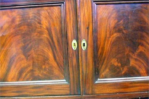 AN EMPIRE MAHOGANY TWO DRAWER ABOVE TWO DOOR SIDE CABINET;