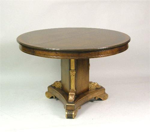 <b>AN EMPIRE-STYLE PARCEL-GILT AND CARVED WALNUT DINING TABLE</b>