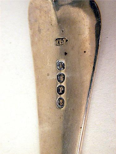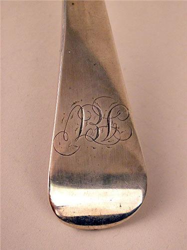 Hallmarked TD, London, 1790, monogrammed. 12"l, weight approximately 5 T.O.