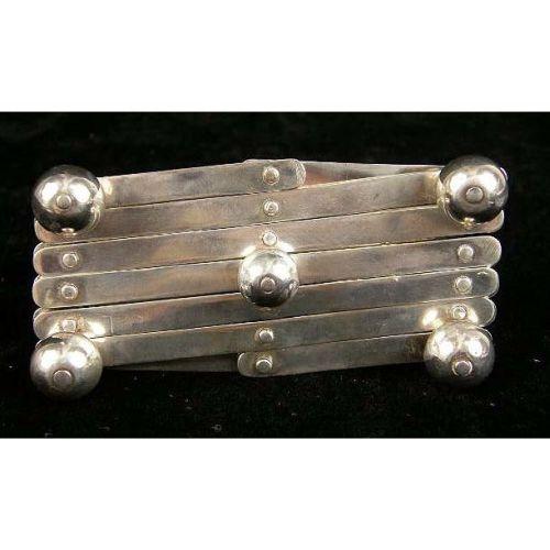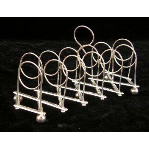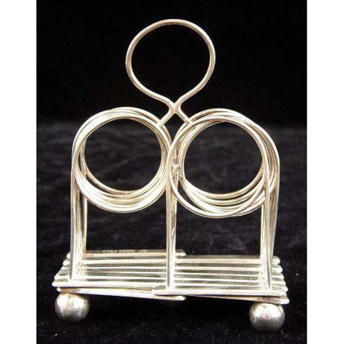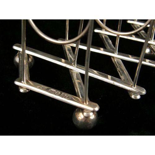 AN ENGLISH SILVER EXPANDABLE TOASTRACK<BR><BR>Hallmarked EH (Edward Hutton), London, 1889, with loop handle, on four ball feet, 5"high, weight apx. 7 T.O.