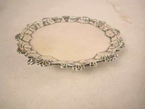 AN ENGLISH SILVER SALVER; Hallmarked, maker R.R, worn 6"diameter, apx. 7 T.O.
