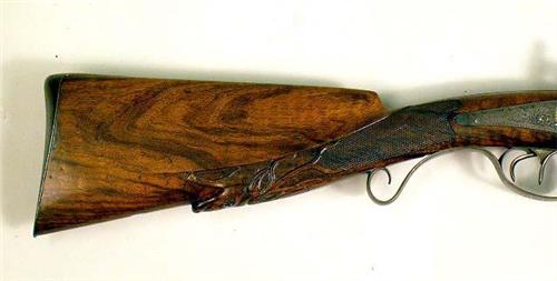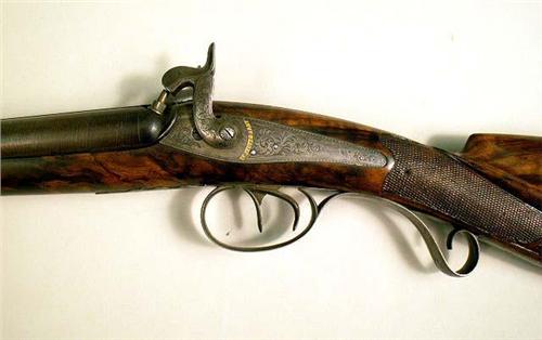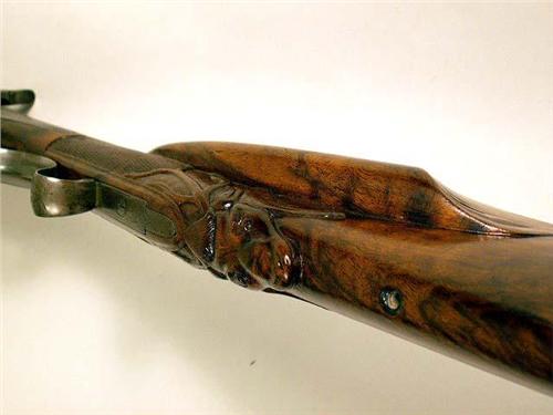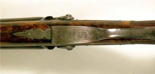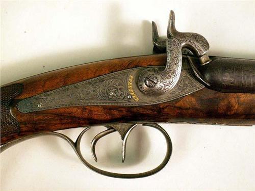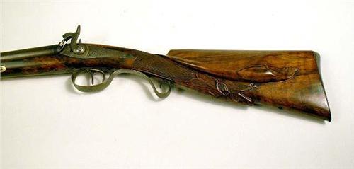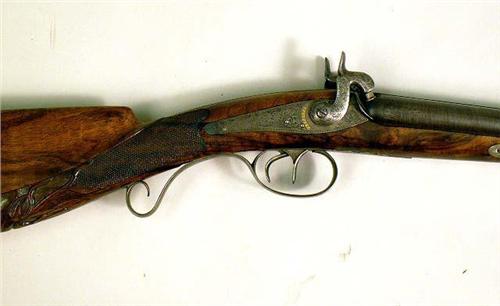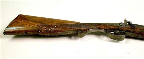 German, the lock engraved and gilt "Pfeuffer (Factory), In Stuttgardt". Minor losses, wear, and replacements. 47"l.