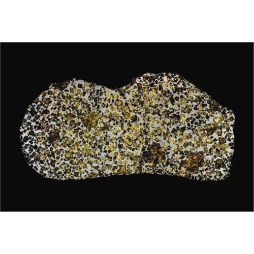 <B>AN ENORMOUS COMPLETE SLICE OF A GEMSTONE METEORITE</B></I><BR> <I>Stoney Iron, PAL (Pallasite)<BR>Fukang, Xinjiang Uygar, China</B></I><BR>So beautiful is the relatively recently-discovered Fukang meteorite, that at first scientist considered providing it with a new and separate classification. All pallasites, such as the Esquel and Imilac meteorites, are considered amongst the very finest meteorites to be had amongst collectors, but the gorgeous gem- like olivine crystals that dot the nickel-iron matrix of the Fukang are so significantly larger than those found in other pallasites that scientists were given pause for thought. None the less, it was classified with the Main Group of pallasites, and widely acknowledged to be the emperor of all meteorites, for its rarity, as well as its dazzling beauty. Only two specimens were recovered from the fall in Fukang, and it is from the main mass that this enormous slice was taken, complete with the entire section of fusion crust around its perimeter. There have been only 3 complete slices taken from the center of the main mass which have survived undamaged, and this is one of them, making the present specimen one of the largest gem-quality Pallasite slices in existence. As is often characteristic, the olivine crystals are of such quality that many can be classified as gem peridot of faceting grade. The extreme variations in hardness found in these meteorites makes the preparation of a slice of this size an arduous task. Each cut takes weeks of vigilance to ensure that the specially forged saw blades remain on their intended path, and once the slice has been removed several treatments for preservation are applied before the extensive and painstaking polishing stage. The result is a testament to the combined expertise of craftsmen and engineers at the forefront of their field, as this spectacular piece so amply demonstrates, measuring 35 ¾ x 17 ½ inches and weighing in at 10,150 grams (22.37 pounds). <BR><BR><b>Shipping:</b> Requires 3rd Party Shipping (<a target="_blank" href="http://www.heritageauctions.com/common/shipping.php">view shipping information</a>)