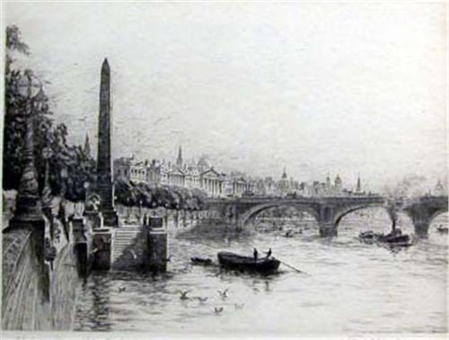 AN ETCHING; "Cleopatra's Needle, Victoria Embankment", pencil signed lr. Frank Harding (British early 20th century), 8-3/4" x 11-3/4", matted & framed