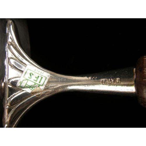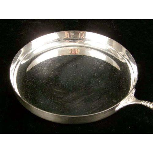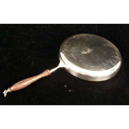 AN IFC, ITALY SILVER PLATED WOODEN HANDLED COOKING PAN<BR><BR>9-1/2" diameter