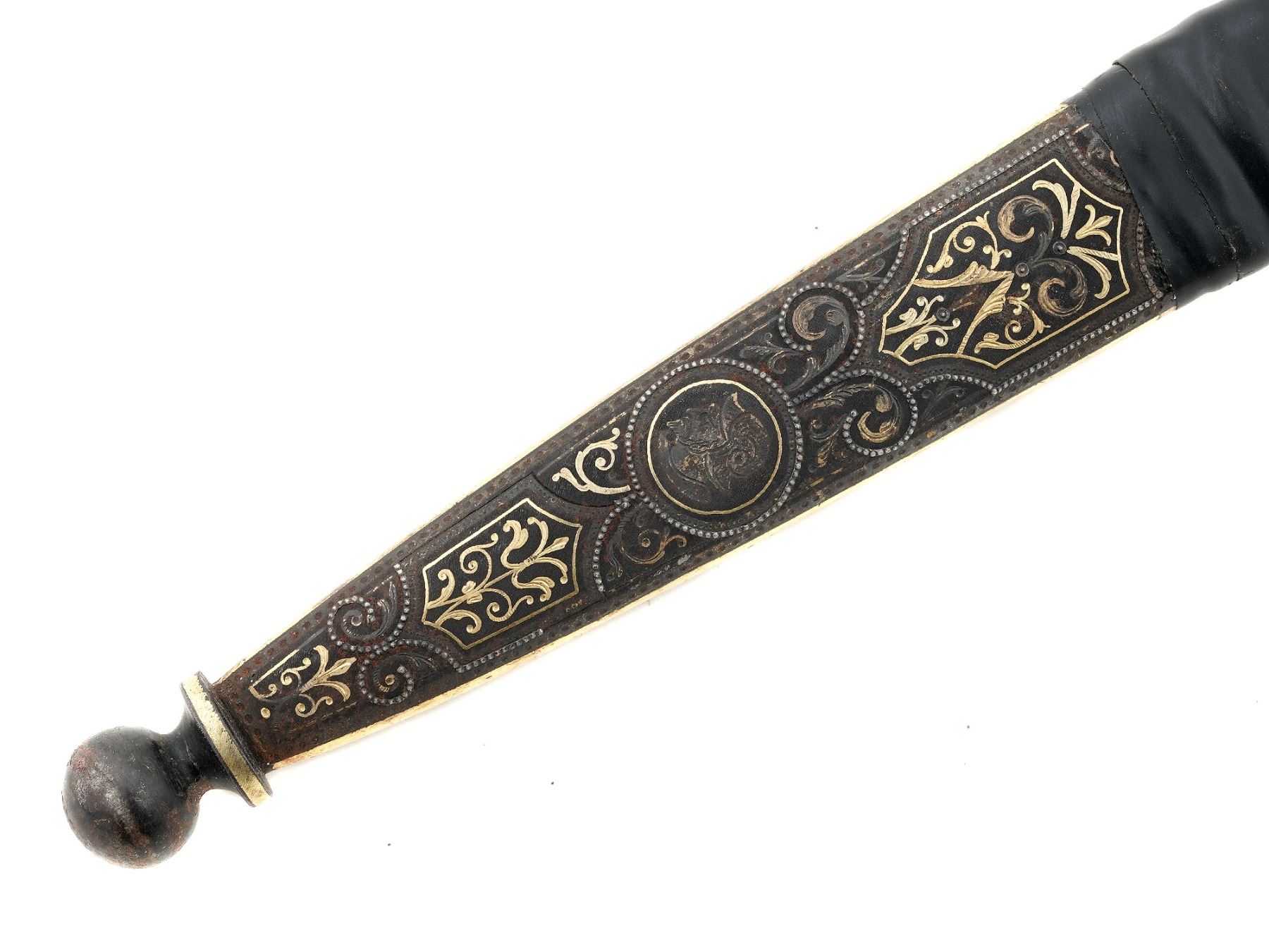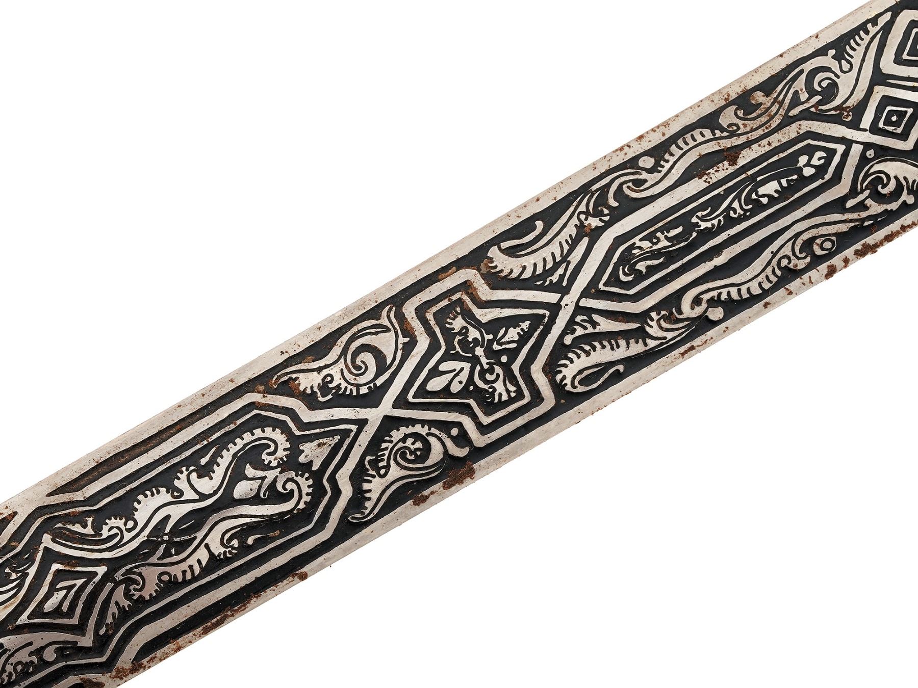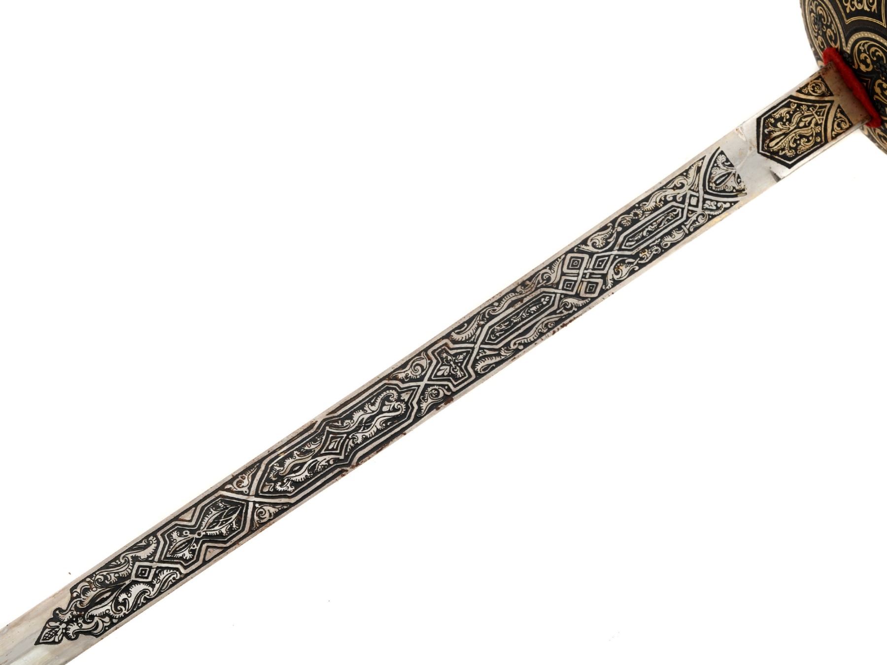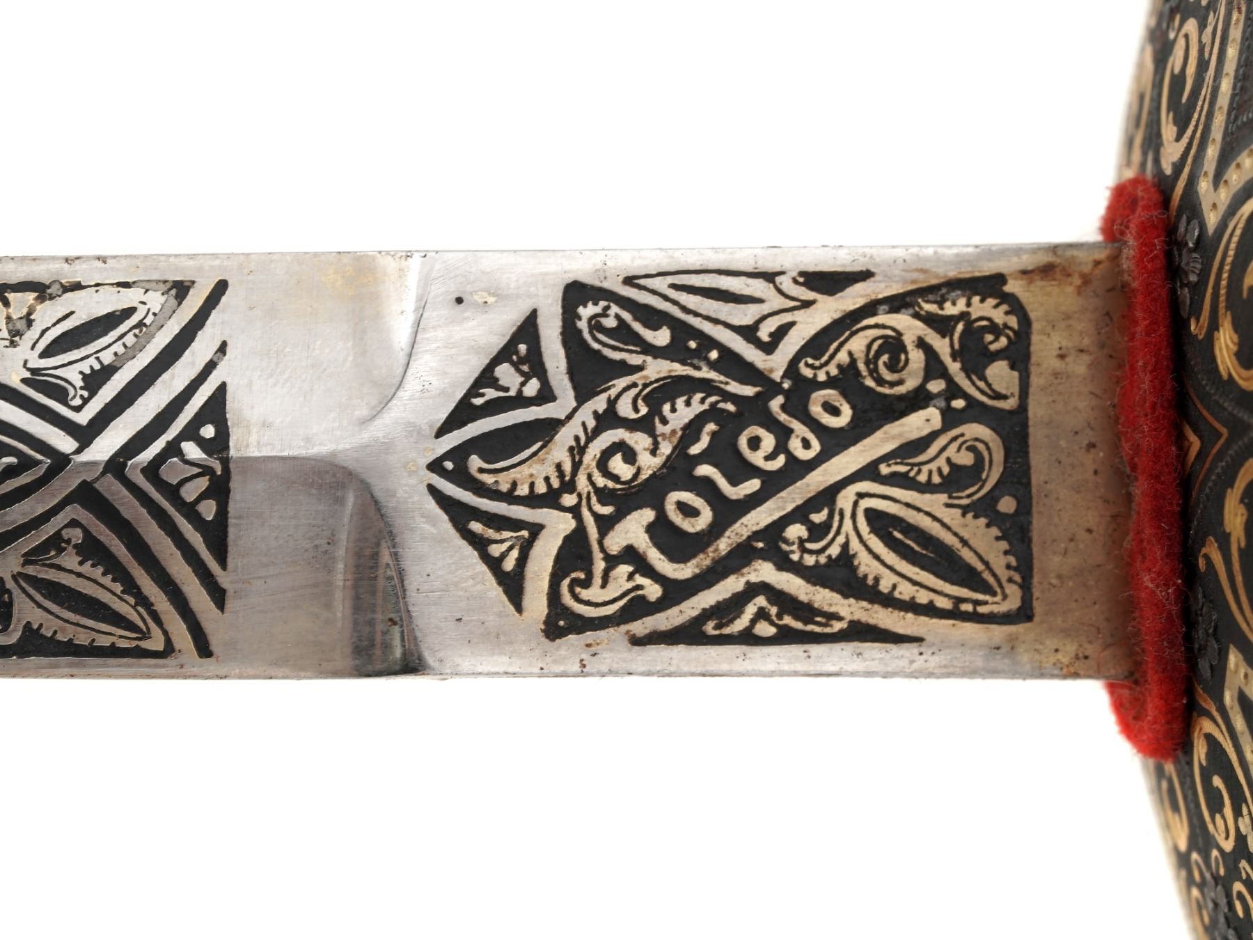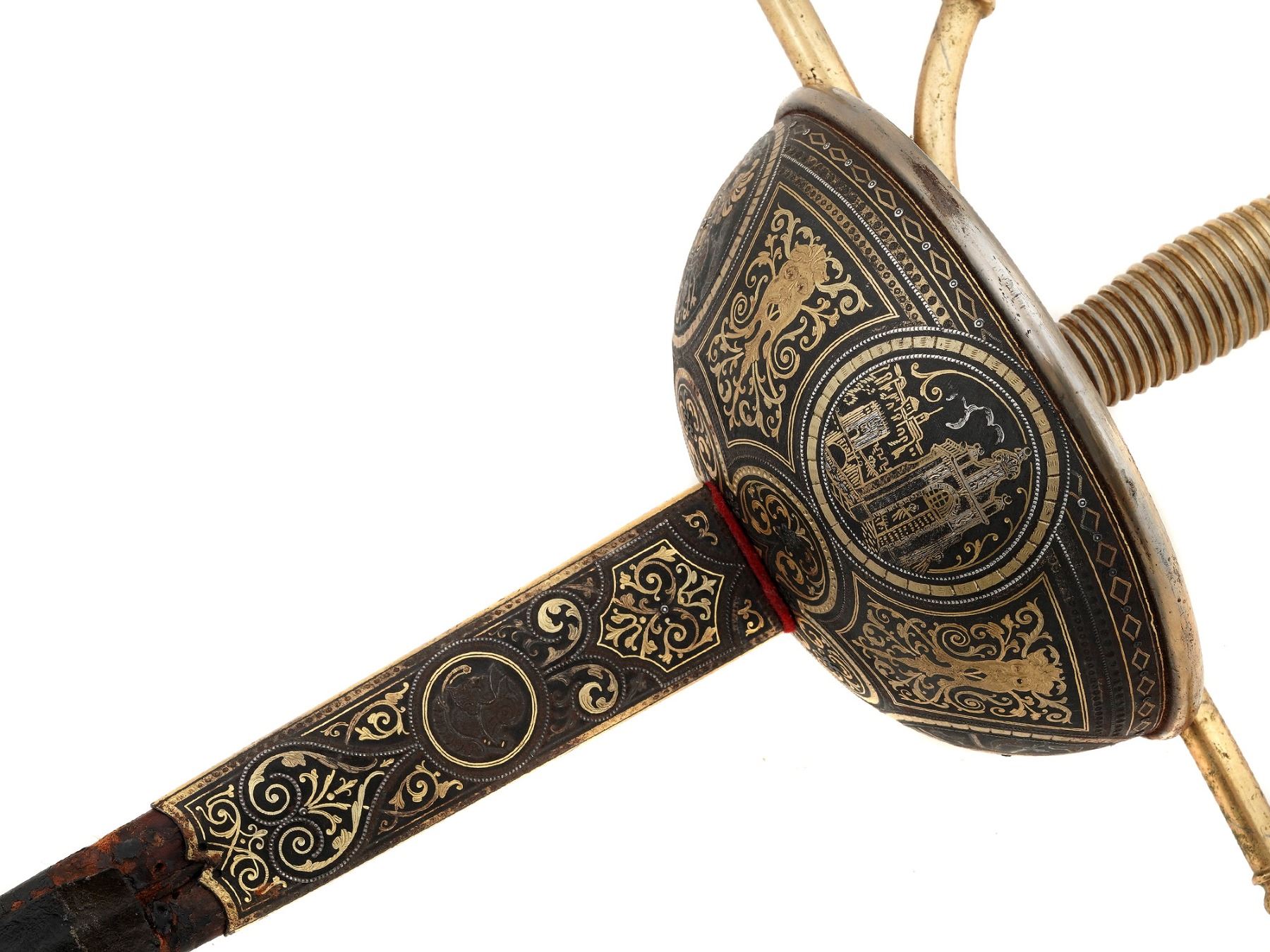 AN IMPORTANT TOLEDO, SPANISH DAMASCENE RAPIER WITH SHEATH, 19-20 CC.