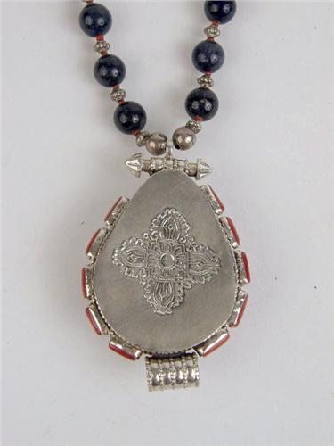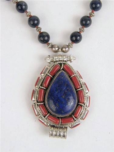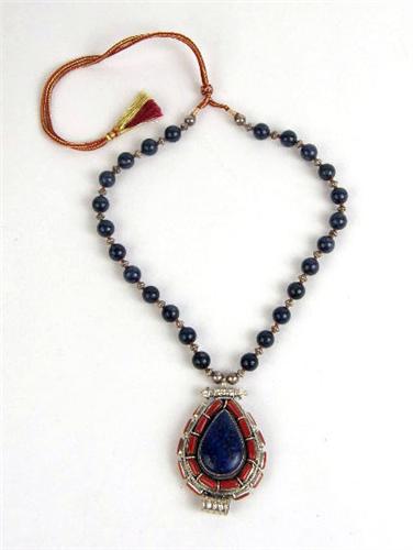 <b>AN INDIAN SILVER NECKLACE WITH LAPIS LAZULI AND CORAL</b>