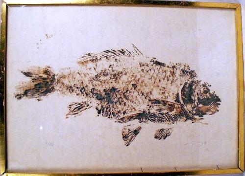 Print of a fish, signed illegibly lr, numbered 9/96. Some discoloration. 16 3/4"h x 23 1/2"w.