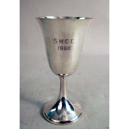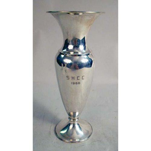 AN INTERNATIONAL WEIGHTED STERLING SILVER TROPHY VASE<BR><BR>Together with a sterling silver goblet trophy and stemmed goblet trophy, tallest 9-3/4"h, total weight apx. 7 T.O. weighable