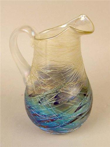 Bears signature "Abelman." Together with an art glass pitcher, bears signature "Lundberg Studio," 2 pieces