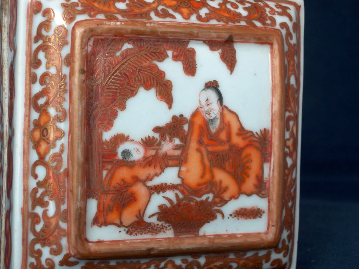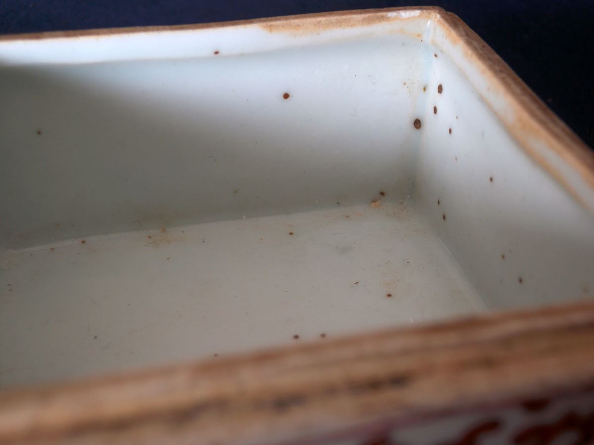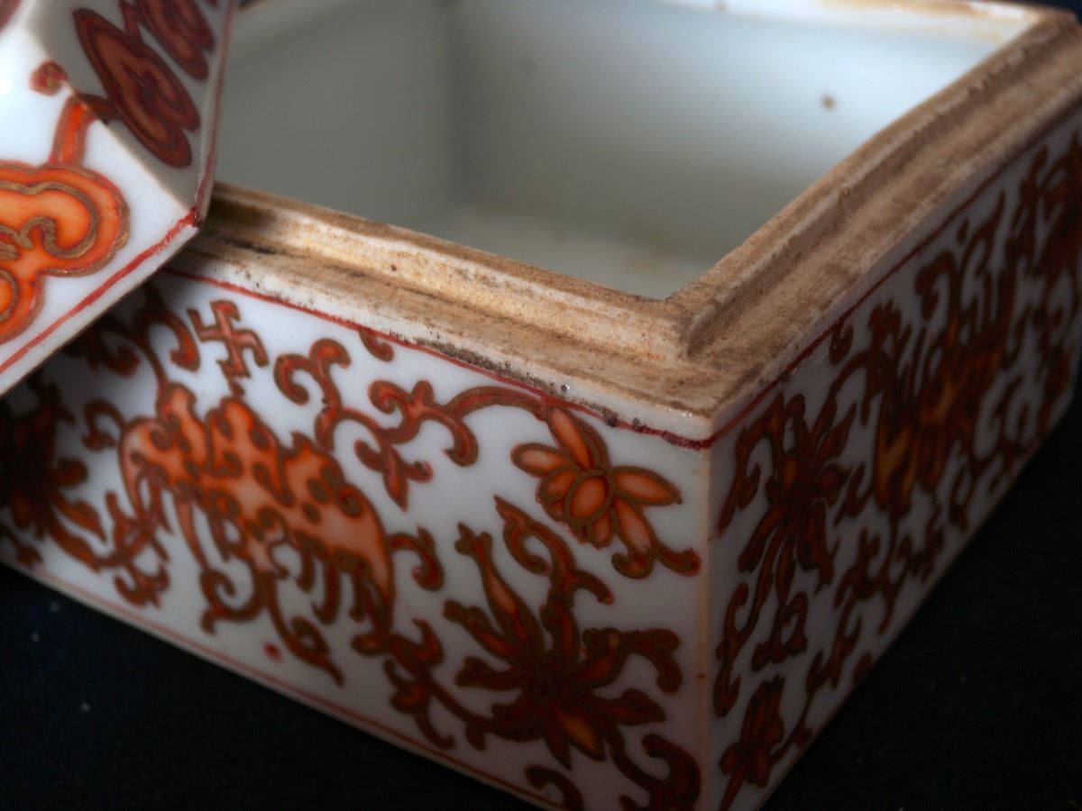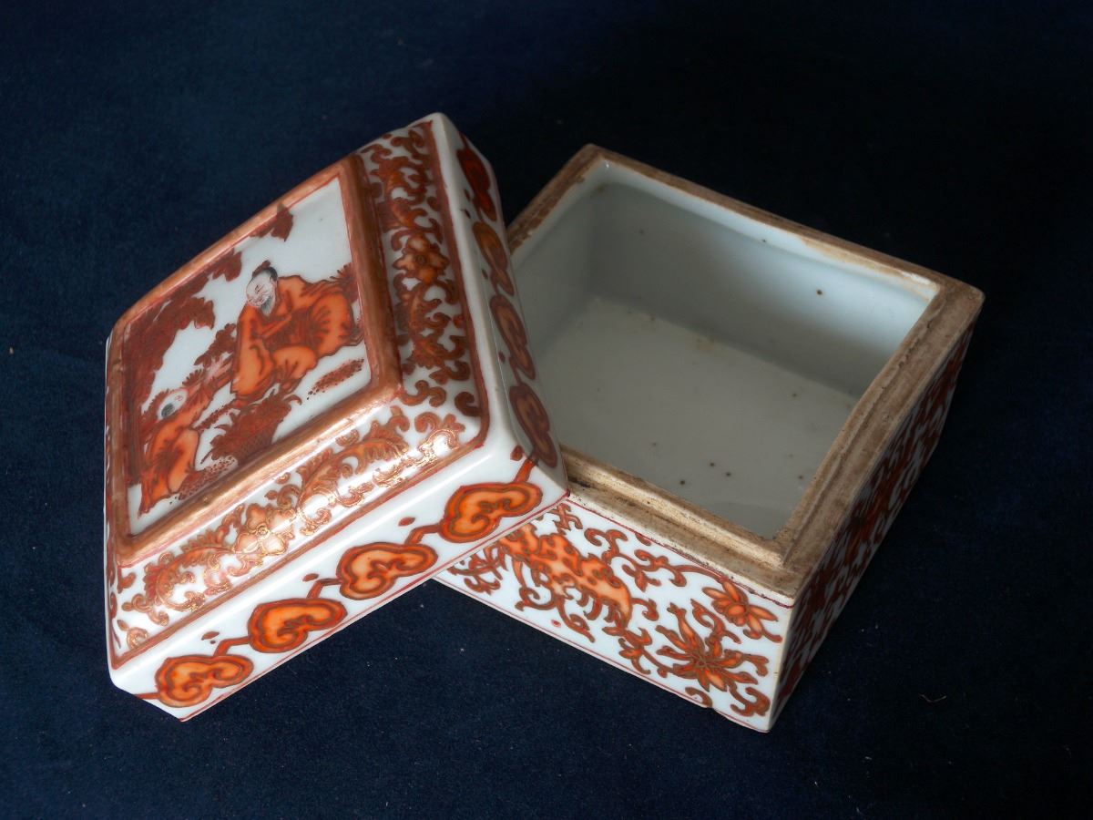 An ink box with iron red auspicious patterns painted, Made in Qing Qianlong Year mark. 3.75"×3.75"×3.75"