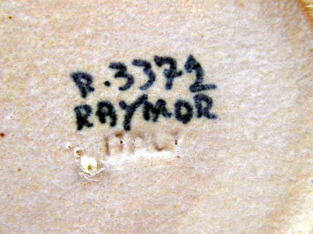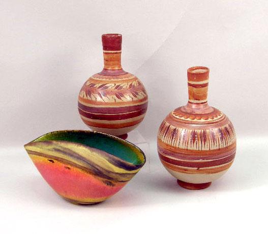 Signed Raymor R. 3372, impressed "Italy." Together with two Mexican-style jugs. The tallest 12"h Scattered chipping.