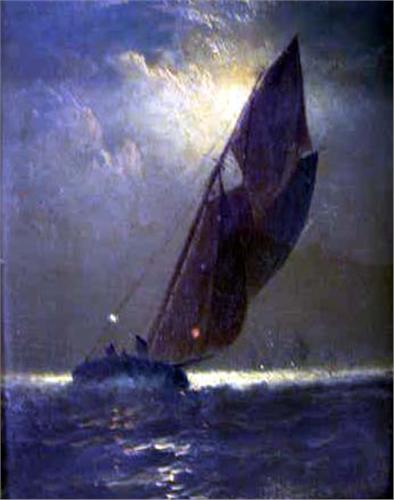 AN OIL ON BOARD OF A SAILING SHIP;