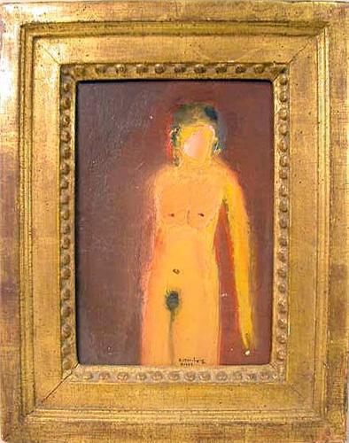 Titled "Silent", signed and dated lc "Rosenborg 1953" (Ralph Rosenborg, 20th C), paper label on verso from Davis Galleries, NYC. Provenance: Descended from the family of Louise Nevelson. 9"h x 6 1/2"w.