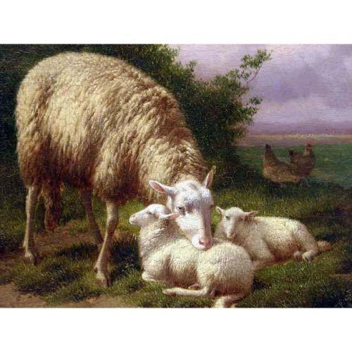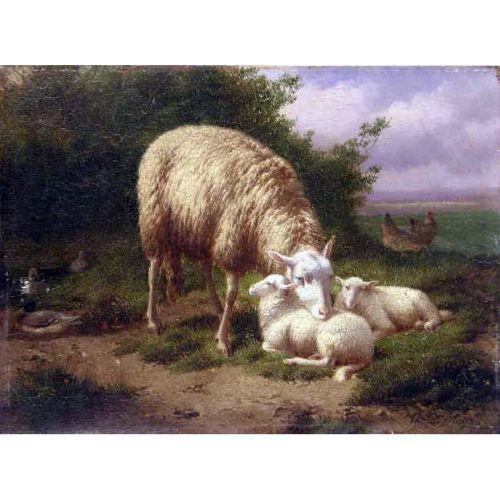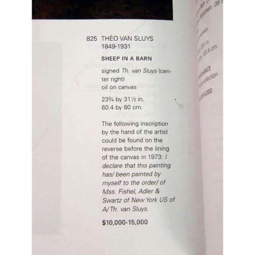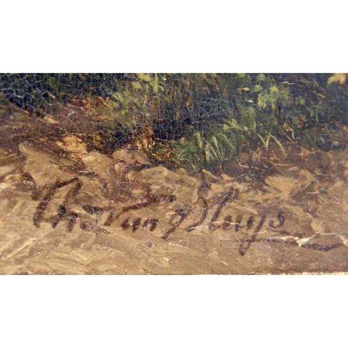 AN OIL ON BOARD<BR><BR>Depicting sheep in a field, bears signature "Theo Van Sluys" crackling around edges, 10-1/2"h x 14"w