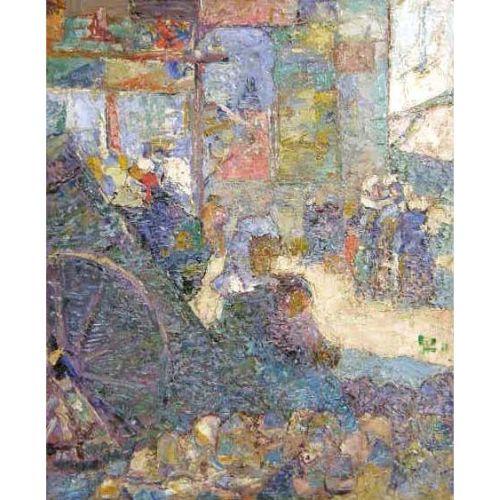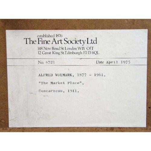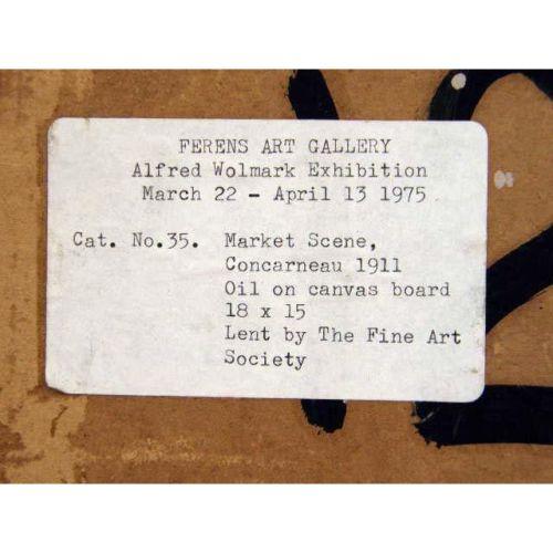 AN OIL ON BOARD<BR><BR>Titled "The Market, Concarnneau, 1911" signed with monogram and dated l.l. "Alfred Wolmark," 18"h x 14"w