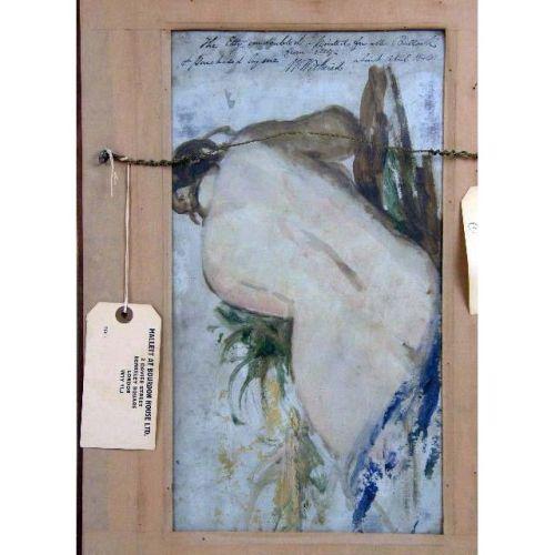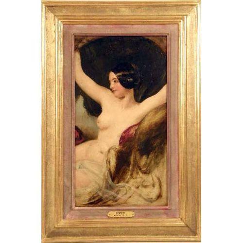 AN OIL ON BOARD<BR><BR>Of a female nude, bears signature William Etty, with sketch on verso, 16"h x 9"w