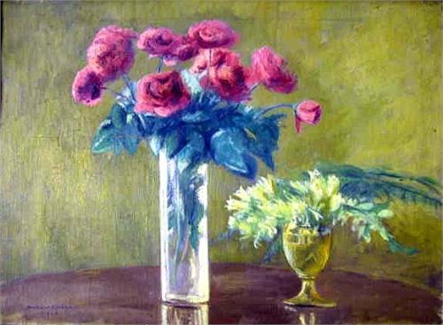 AN OIL ON CANVAS; a still-life depicting a vase of roses, signed l.l. Hermann Struck 1928 (German, 1876-1944). 22 3/4" x 31"