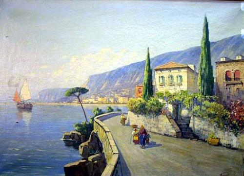 AN OIL ON CANVAS; depicting a Mediterranean seaport, signed l.r. Kuchman (?). Losses. 27 1/2" x 38 1/2"
