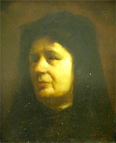 AN OIL ON CANVAS; depicting a formidable, well-dressed matron circa 1840. Together with an oil on canvas of a matron in widow's weeds. 2 pieces. Scrapes. 29" x 24"