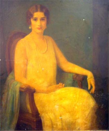 AN OIL ON CANVAS; depicting a young woman dressed in elegant 1920's fashion, verso with an old label from Fritz Hoelzer - Hiram H. Hoelzer/Box 13, New York. City, NY. Losses. 39 1/2" by 33 1/3"