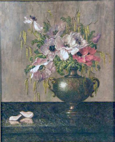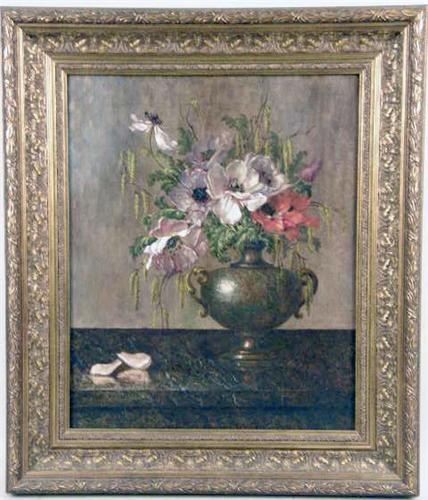 <b>AN OIL ON CANVAS, A MELANCHOLY STILL LIFE OF AN URN WITH FLOWERS</b>