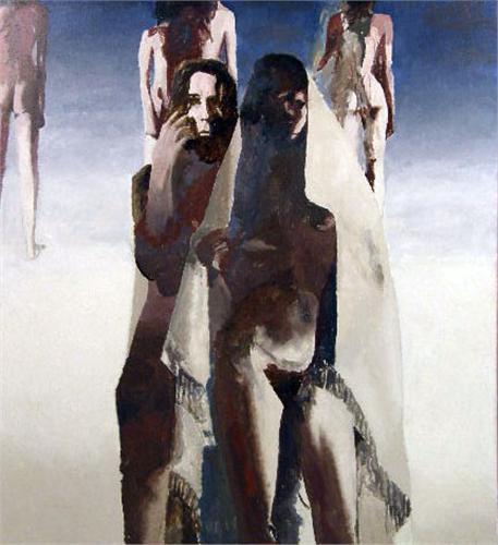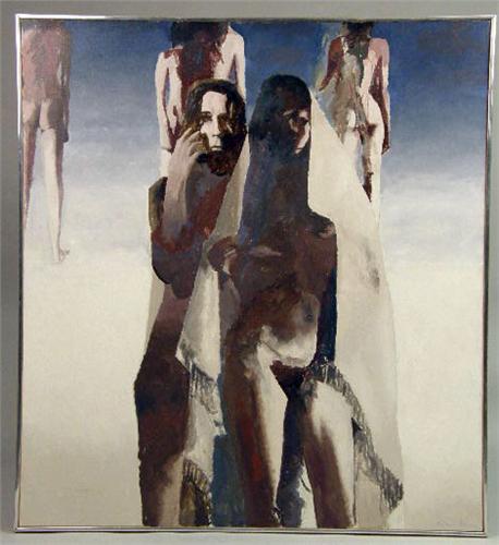 Signed in the paint l.l.c., and being a moody depiction of female nudes. Sight size 50"h x 46 1/4"w