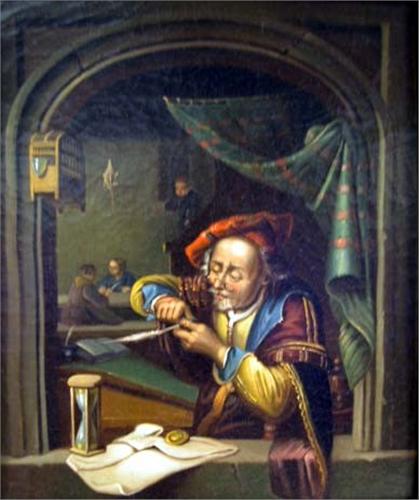 AN OIL ON CANVAS DEPICTING A GENTLEMAN; Continental
